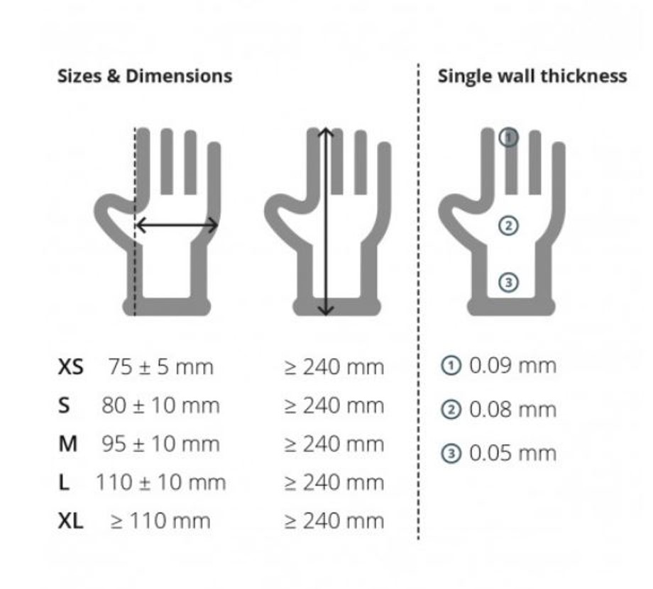 - Standards compliant with EN455-1, EN455-2, EN455-3, EN455-4, EN420, EN 374-1, EN374-2, EN374-3, EN374-4, EN374-5, Food approved