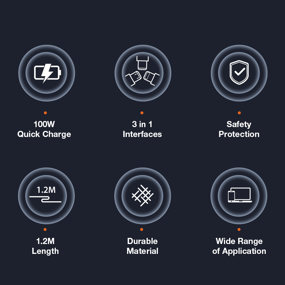 - Model : Rapid 3 in 1 Fast Charging Cable