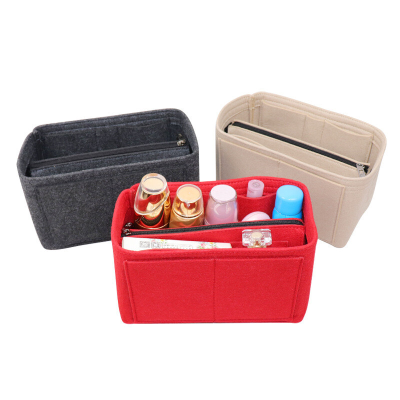 Features: 1. Made of high quality felt, durable, light weight, soft, and water-resistant and easy to clean. 2. Insert bag, protects your handbag, it protects sharp objects(e.g.pens, keys, etc.)from damaging your, bag, helps to protect the interior. 3. With many pockets, keep your bag clean, and all belongs well-organized, fits for a variety of models handbags, keep your handbag shape and shipshape. 4. Practical and can be used for anything aside from your daily makeup kit, ideal as pencil bags, coin purse, cellphone case, gift bag, travel organizer and even as bridal shower gifts or party favors for the ladies. 5. Perfect addition for your outdoor activities, business trips or pleasure travel.