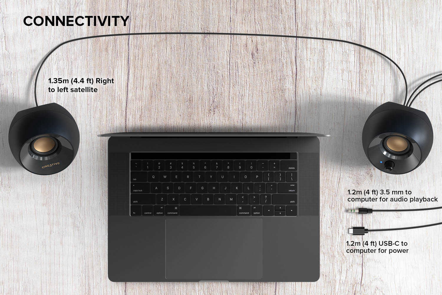 Creative Pebble V2 - Minimalistic 2.0 USB-C Powered Desktop Speakers, 3.5 mm AUX-in, Up to 8W RMS Power for Computers and Laptops, Type-A Adapter Included and Extended Cable