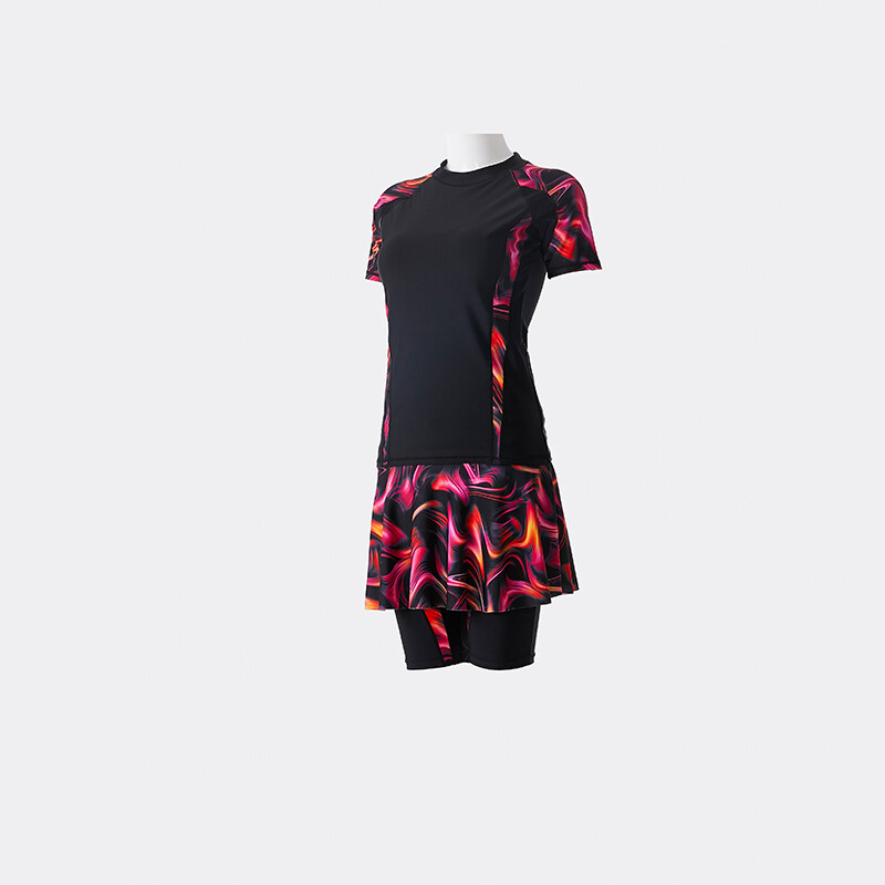 LYSEACIA L-6XL Plus Size Swimsuits for Women Sports Swimwear 3 Pieces Printing Skirt Short Sleeve Tops Stretch Swimming Trunks Large Size Swim Suits Lady Beach Wear