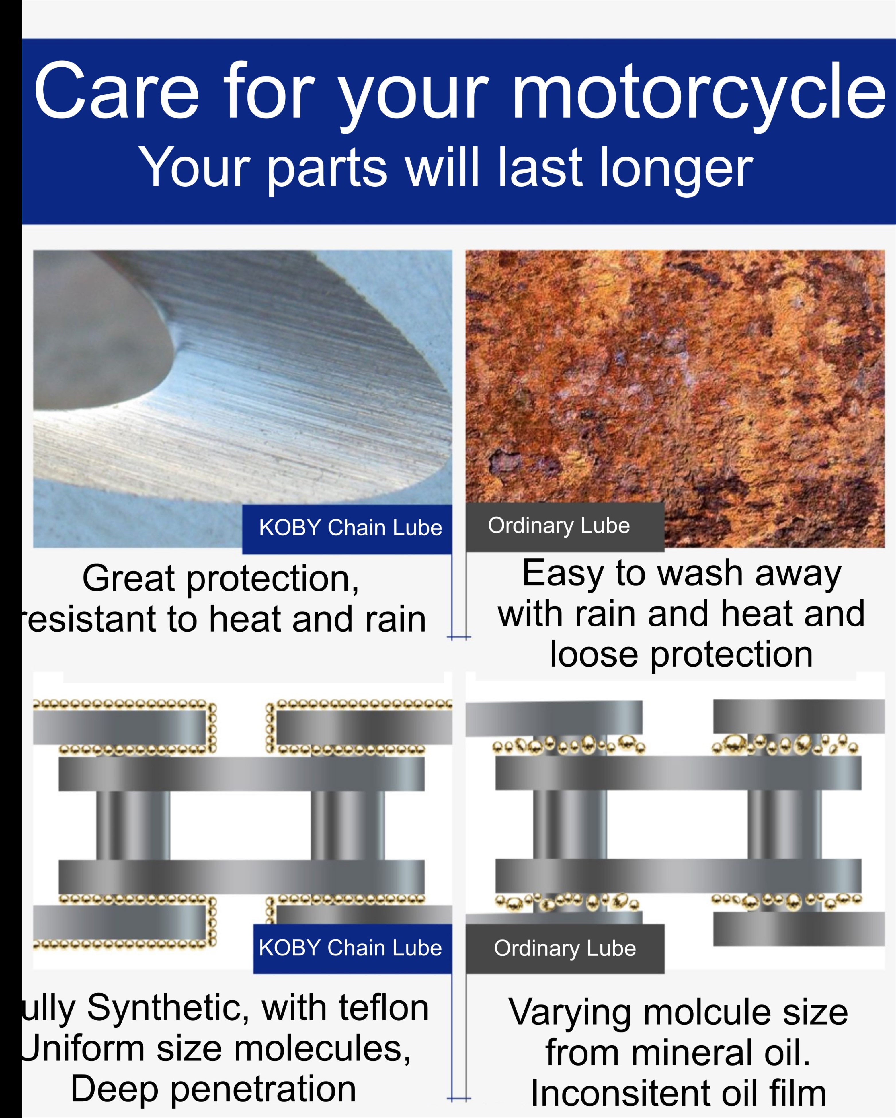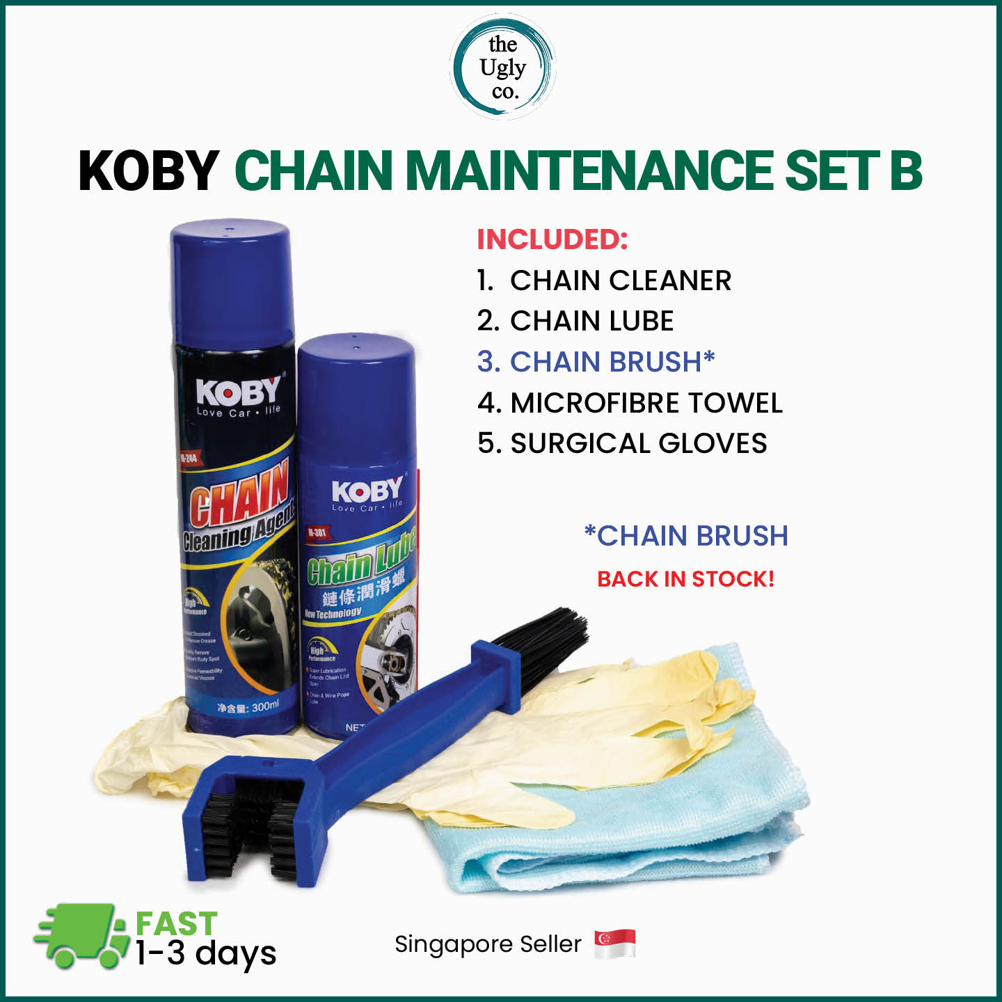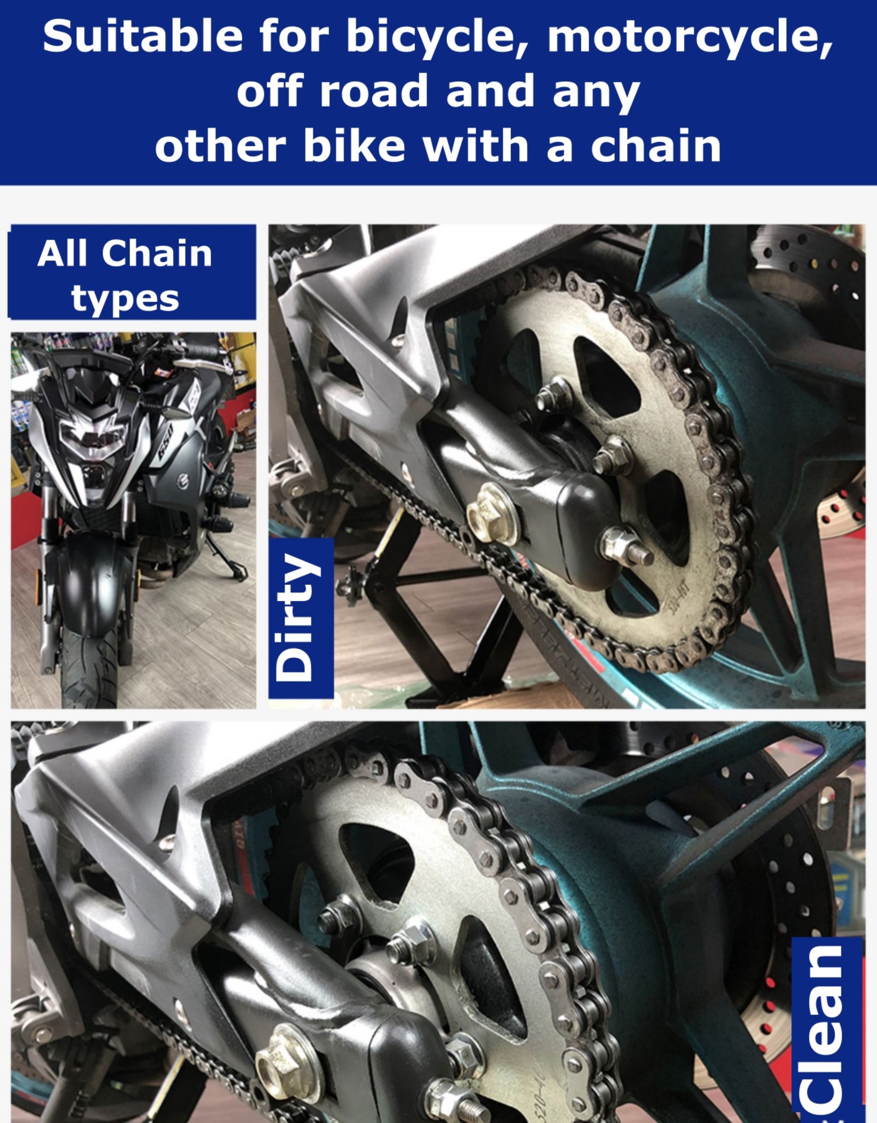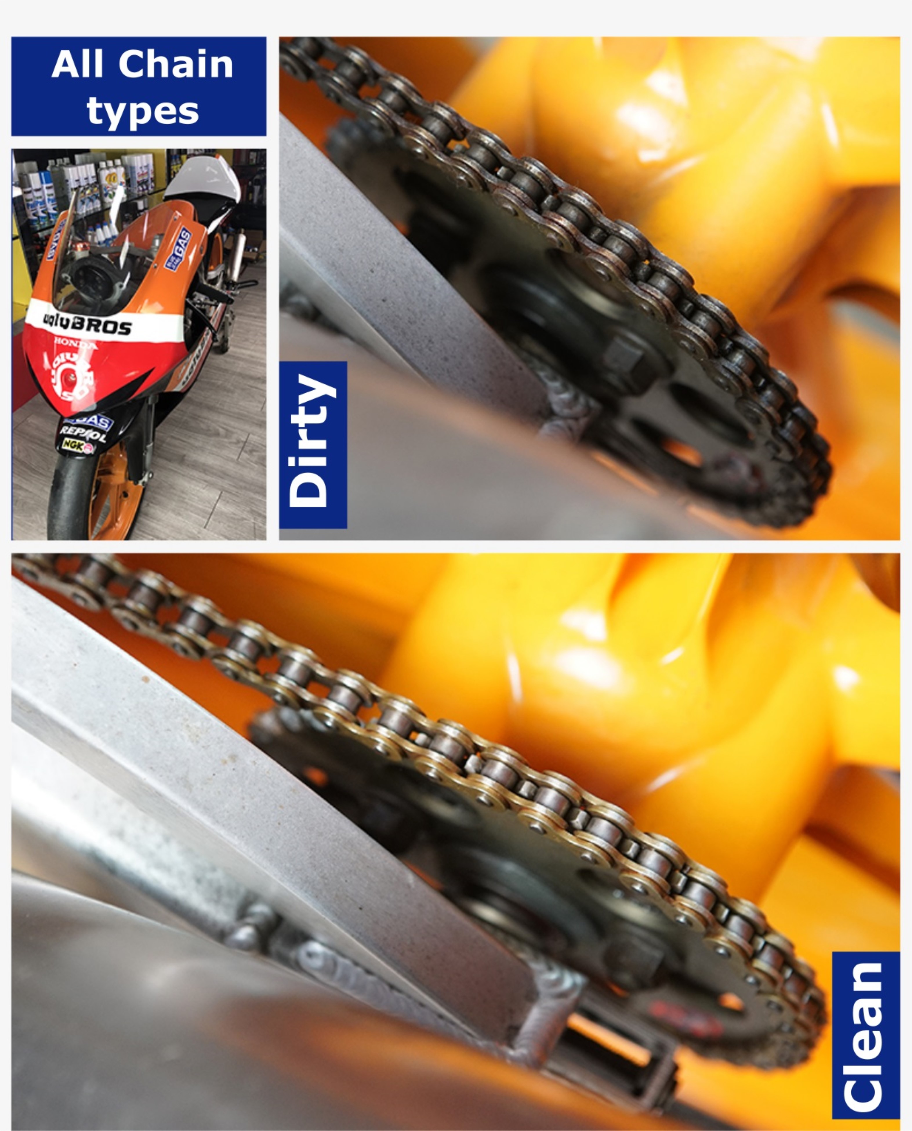 Chain Maintenance Set, Chain Cleaner Spray 300ml, Chain Lube 250ml, chain brush, Motorcycle and bicycle, lubricant, PTFE Teflon, Fully Synthetic, accessories, of all types of chains, classic, O-ring,