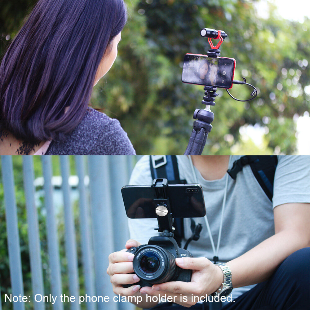 Andoer Rotatable Phone Holder Clamp Clip Mount Adapter with 1/4 Cold Shoe Mount 360 Degree Rotatable for Smartphone Microphone LED Light Video Making