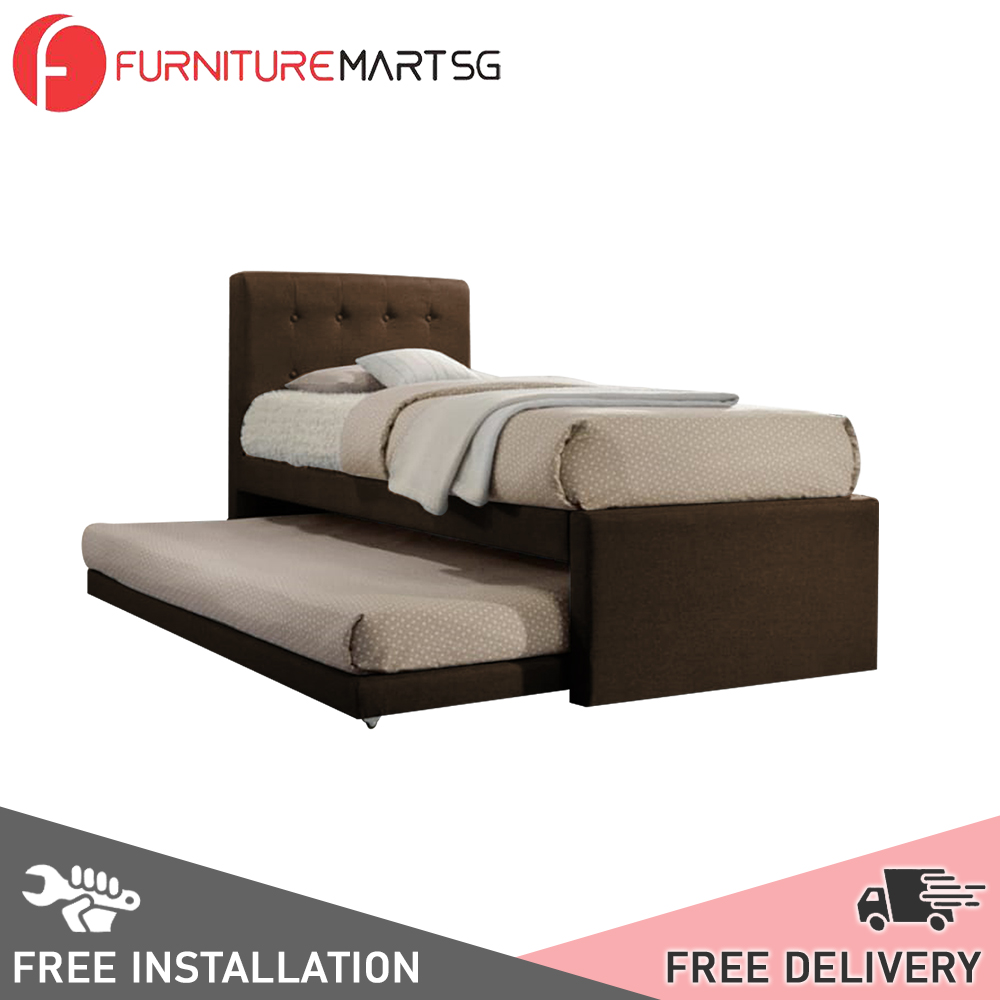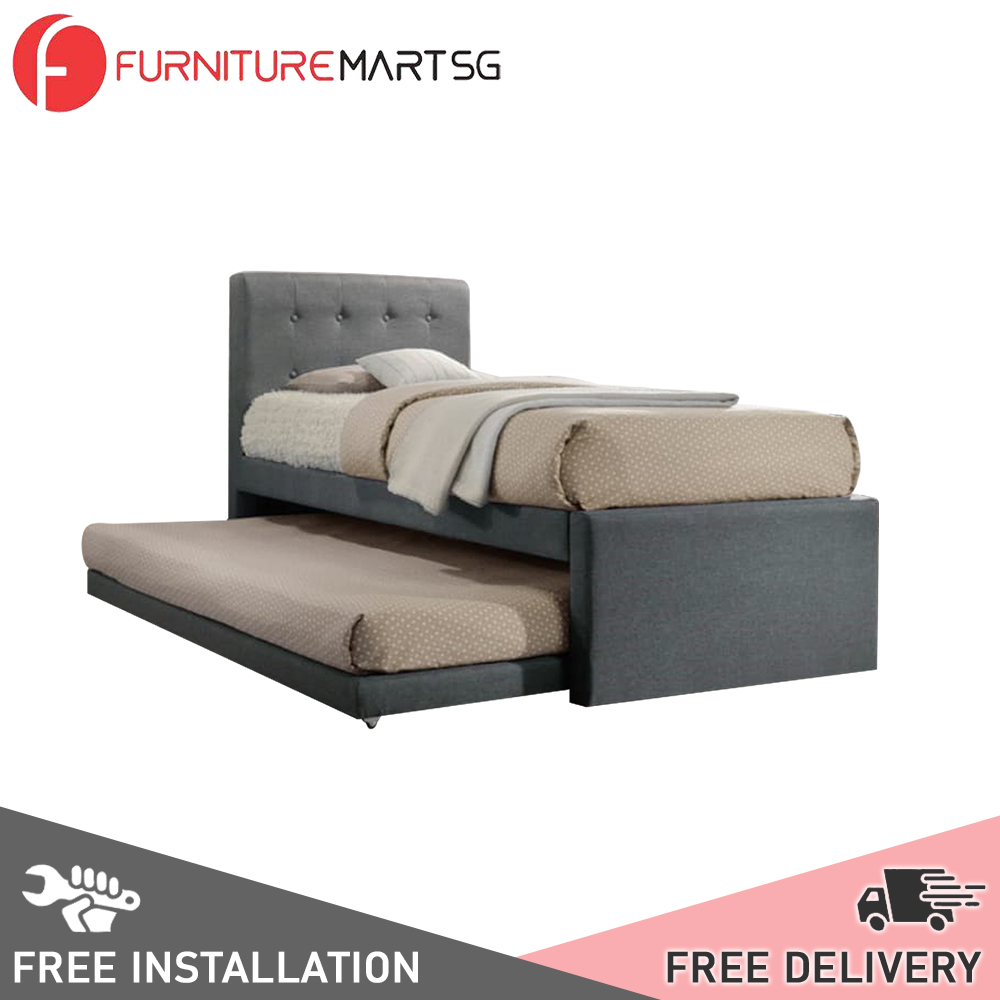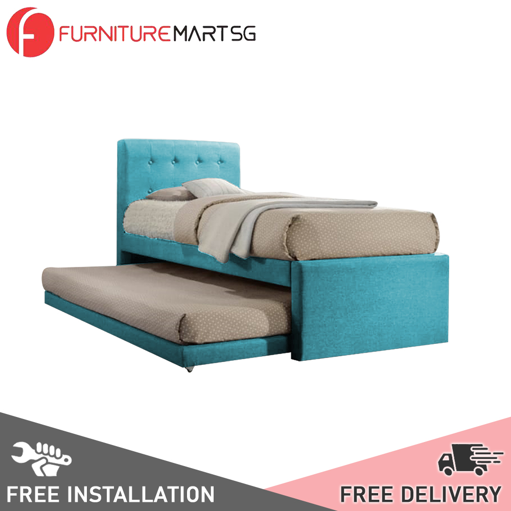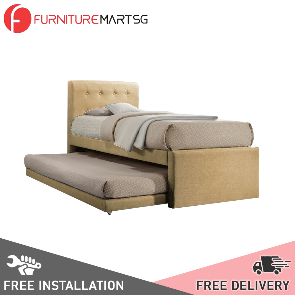 [FurnitureMartSG] Sadie Single and Super Single Pull-Out Type Bed Frame Fabric and Faux Leather in 6 Colour