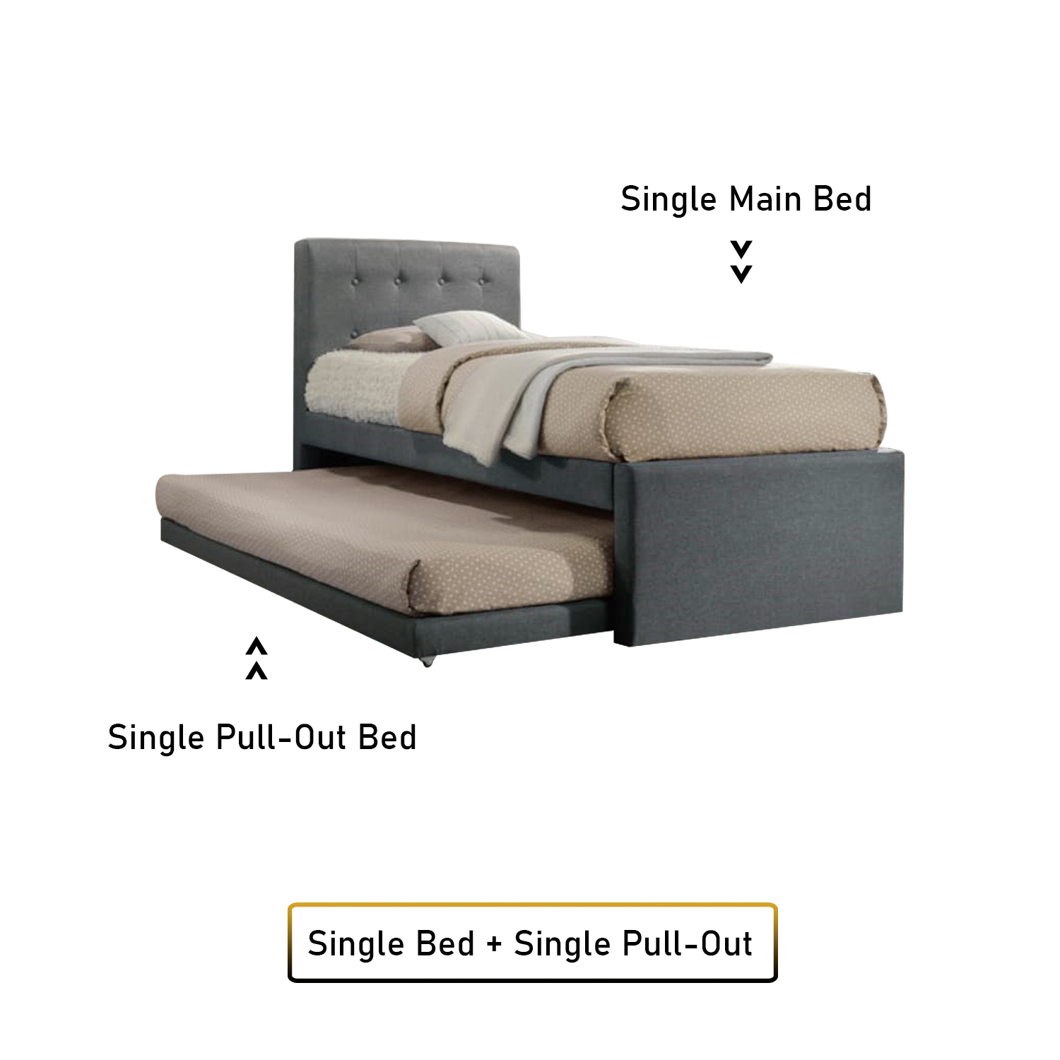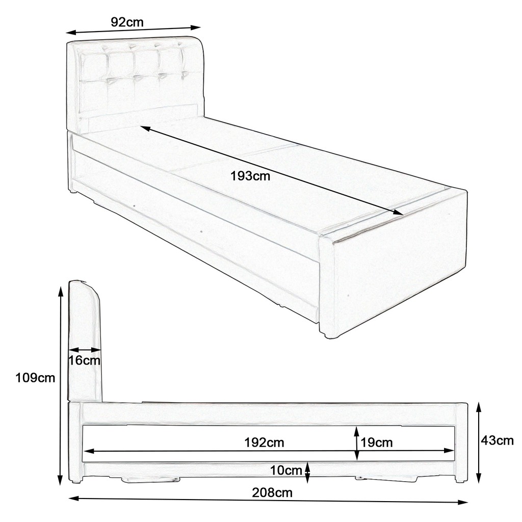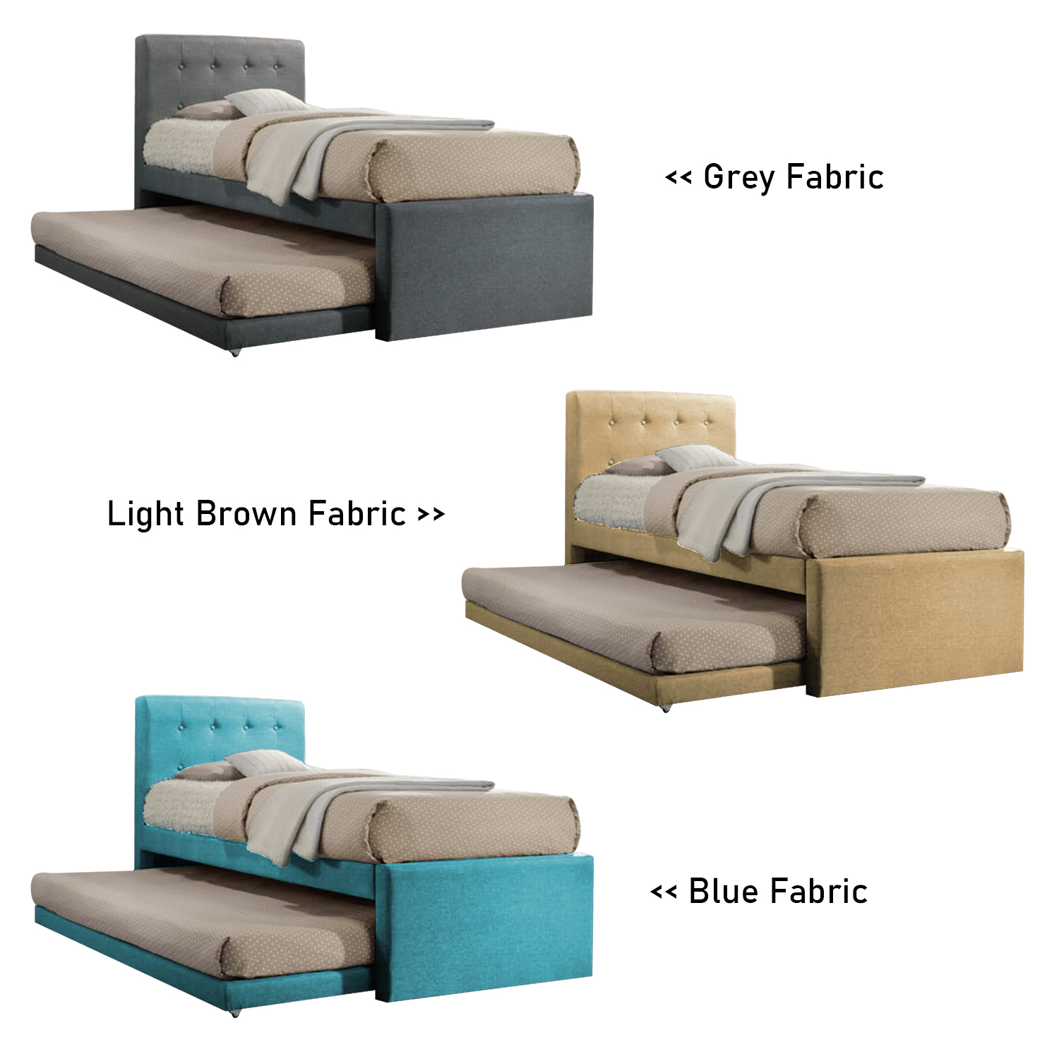 [FurnitureMartSG] Sadie Single and Super Single Pull-Out Type Bed Frame Fabric and Faux Leather in 6 Colour