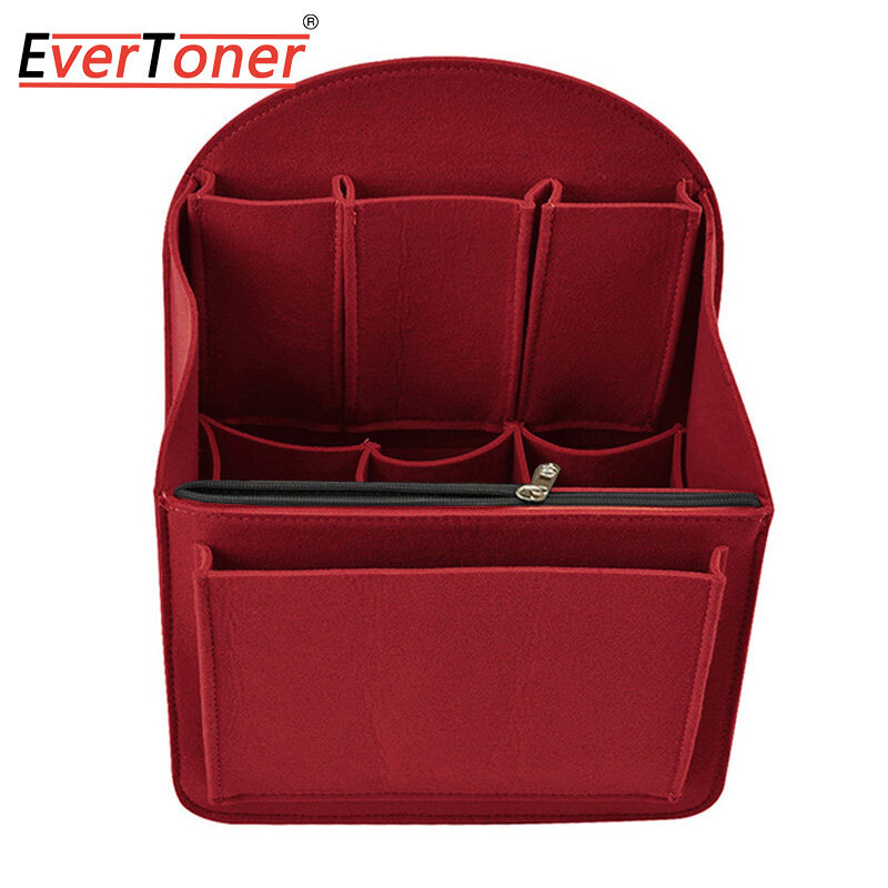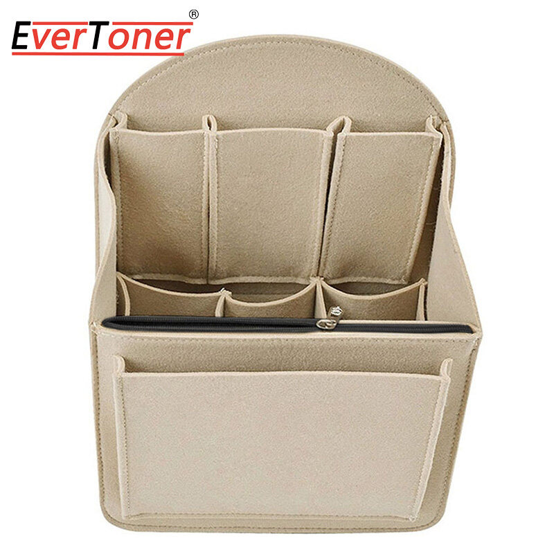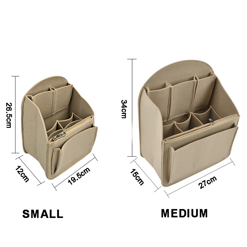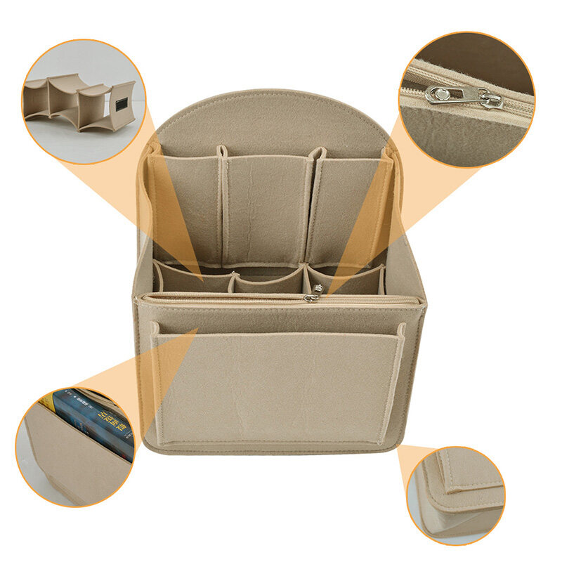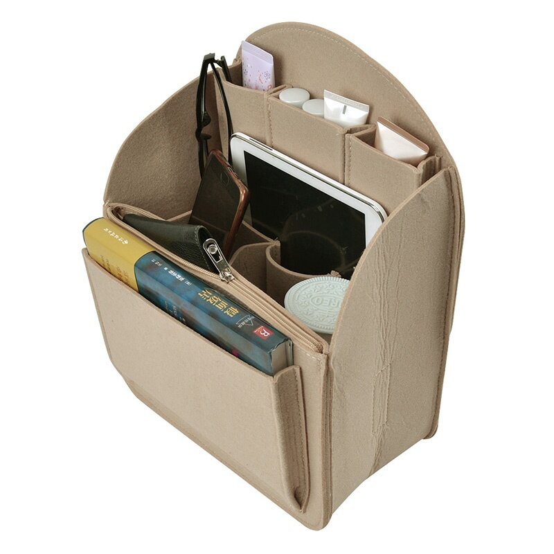 Felt Cloth it can accommodate cosmetics, books, cell phones, notebooks, iPad, umbrella and travel items Made of high quality felt cloth, soft, sturdy, durable and foldable, not easy to deformation Lightweight, will not increase the weight, but will protect your items perfectly and not bloated. It keeps your items in place and be able to switch from bag to bag quickly and conveniently Could be used as backpack organizer, handbag organizer, diaper bag organizer insert, pocketbook organizer, cosmetic bag etc. Fits for a variety of models handbags, keep your handbag shape and shipshape Design of external part, 1 zipper bag & 1 fornt bag; internal part, 3 main pockets & 3 small pockets; back part, 1 elastic pocket