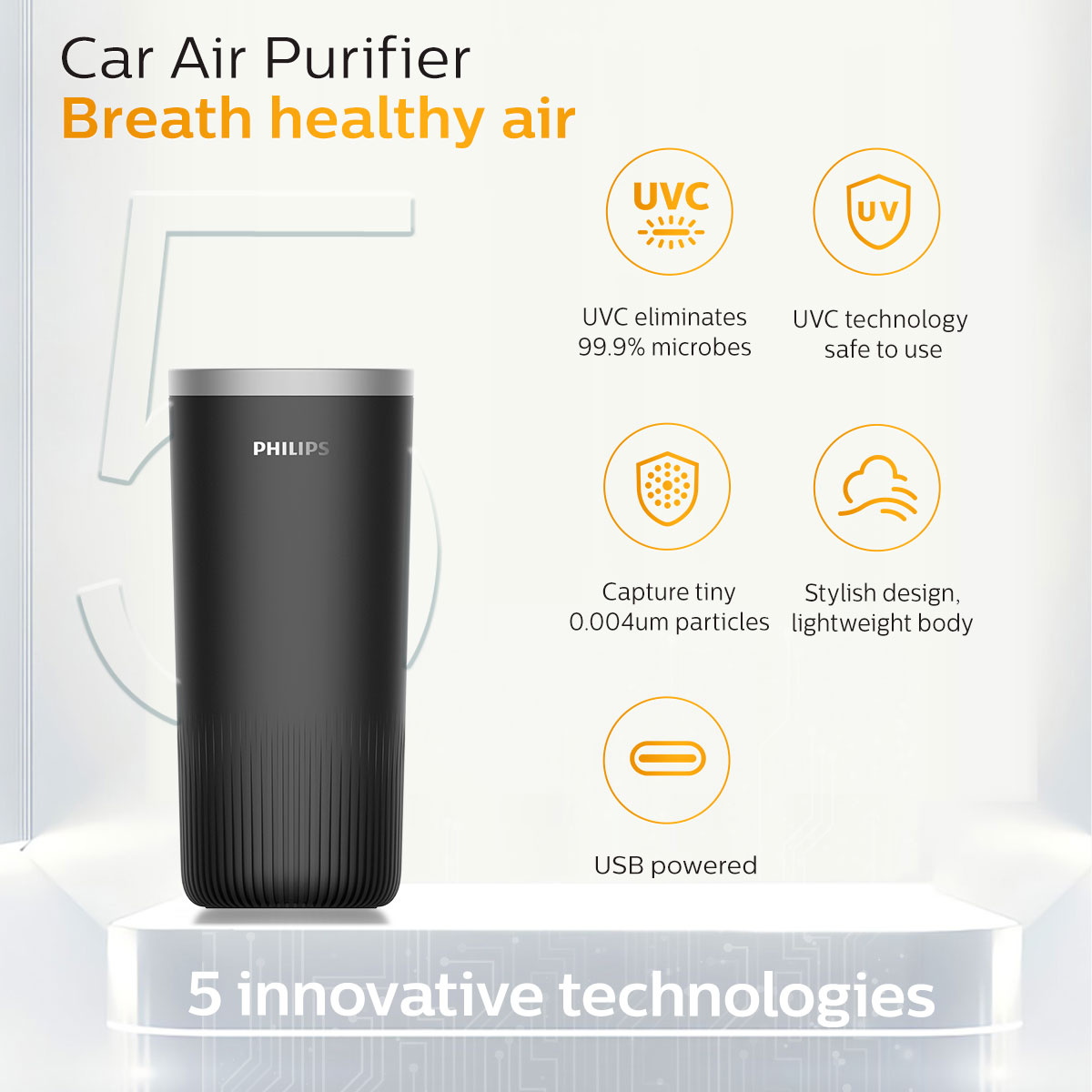 Philips GoPure Style Car Air Sanitizer Purifier GP 3601 3602 | Clean with Filter and UVC Light USB Cable | 1-Yr warranty | Free Replacement Filter | Recommended Gift Item