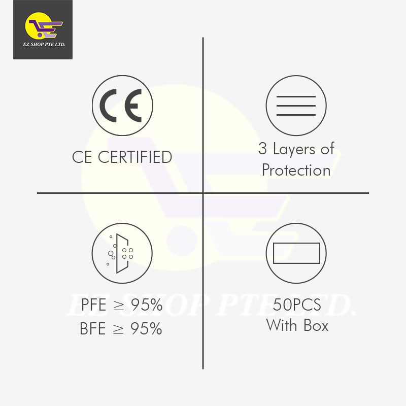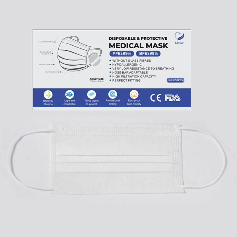 Medical Mask BFE.99% Adult 3plys Disposable Mask 50pcs/box