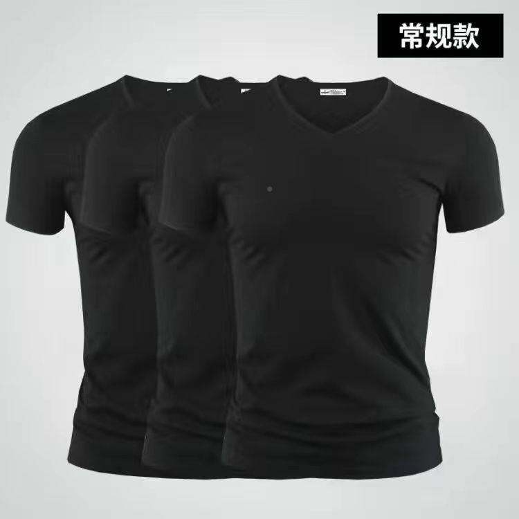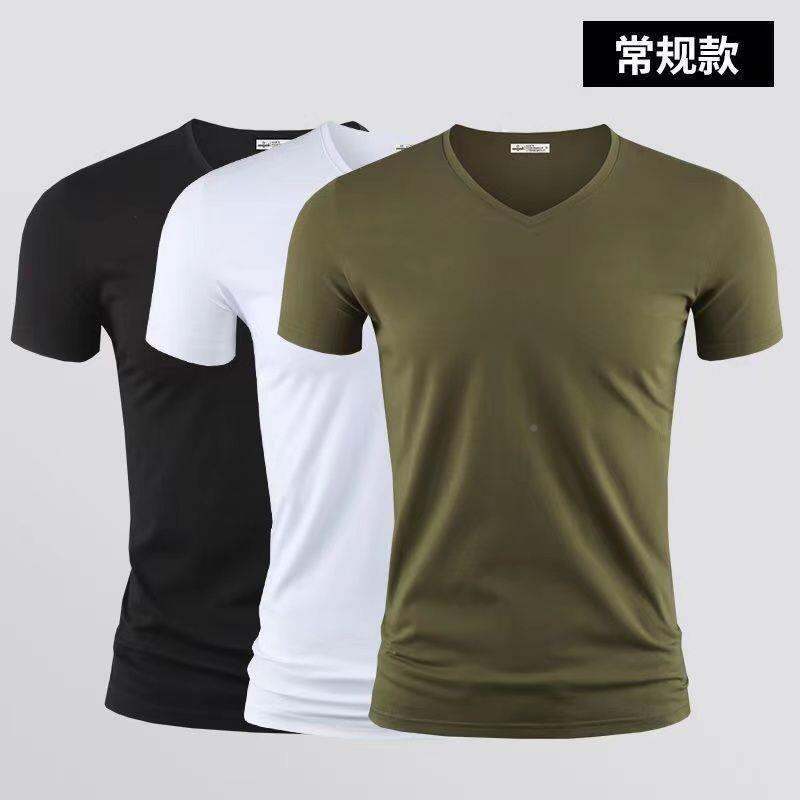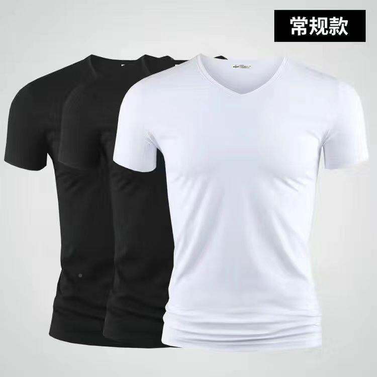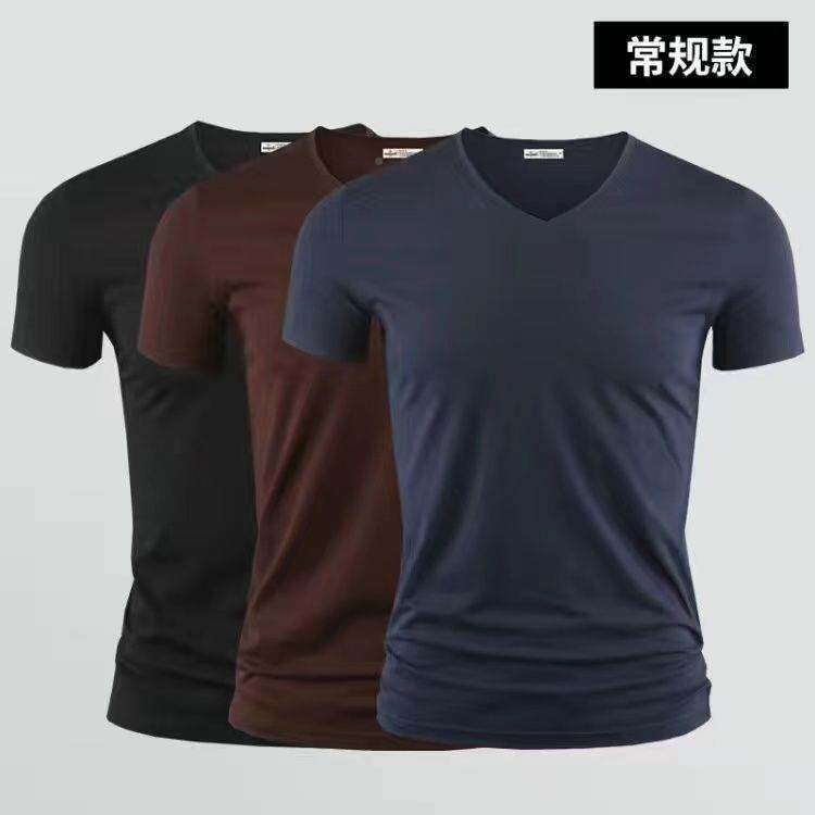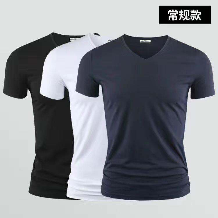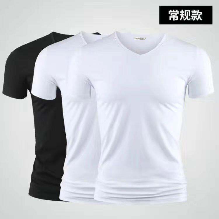 3vyy New Trendy Short Sleeve Pure Men's V-neck Half Underwear Undershirt T-shirt Body Sleeve Ice Silk Body Repair T-shirt 1/