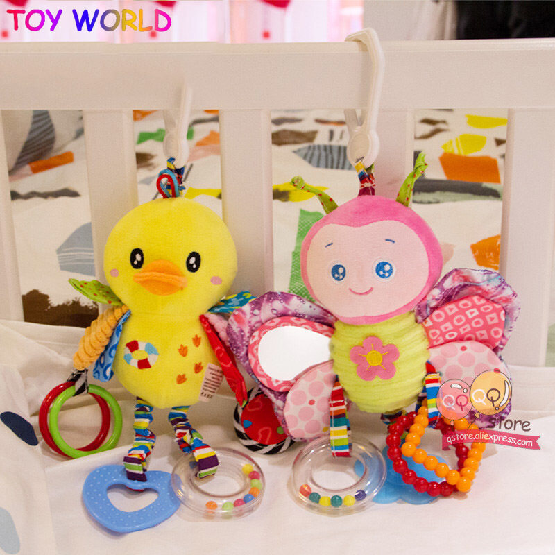 Cute Baby Plush Stuffed Rattle Toys Stroller Hanging Animals Bed Mobile Infant Bunny Newborns Educational Toys for Children Gift