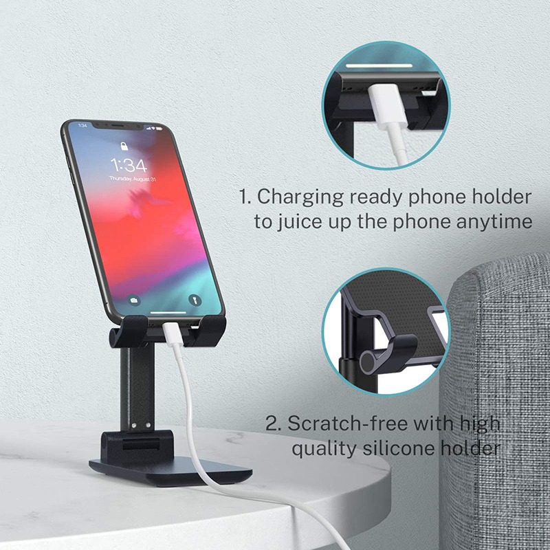 [Ready Stock] Universal Mobile Phone Stand Portable Hand Phone Holder Desk Non Slip Foldable Adjustable Desktop Holder Stand for iphone Samsung Xiaomi Huawei Phone Christmas Gift Present