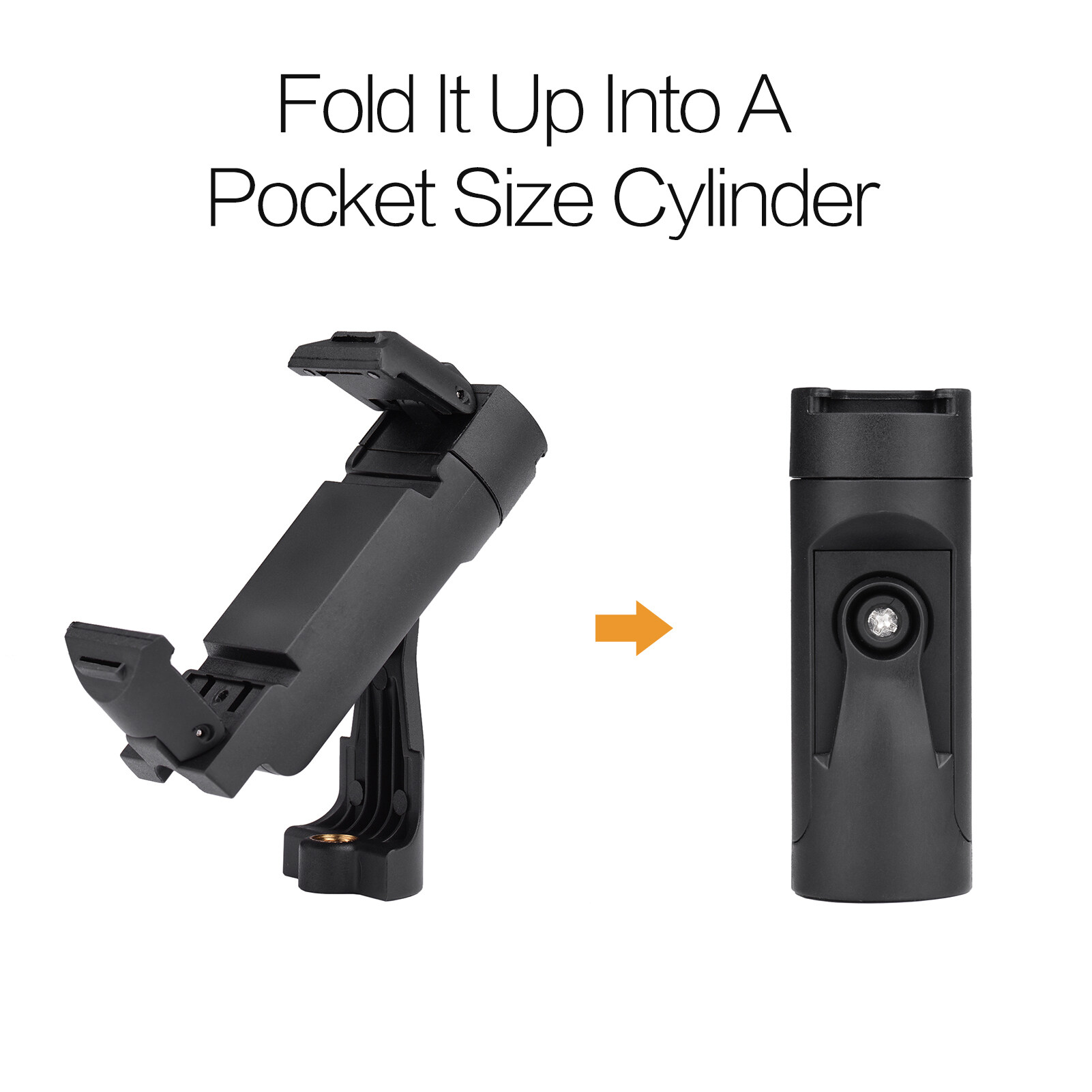 Foldable design enables the phone holder to be folded up into a pocket-sized cylinder for easy carry around.
