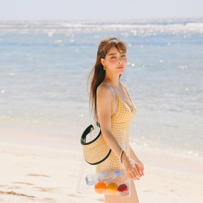 IELGY ins style swimsuit simple and conservative cover belly was thin and fresh plaid holiday girl