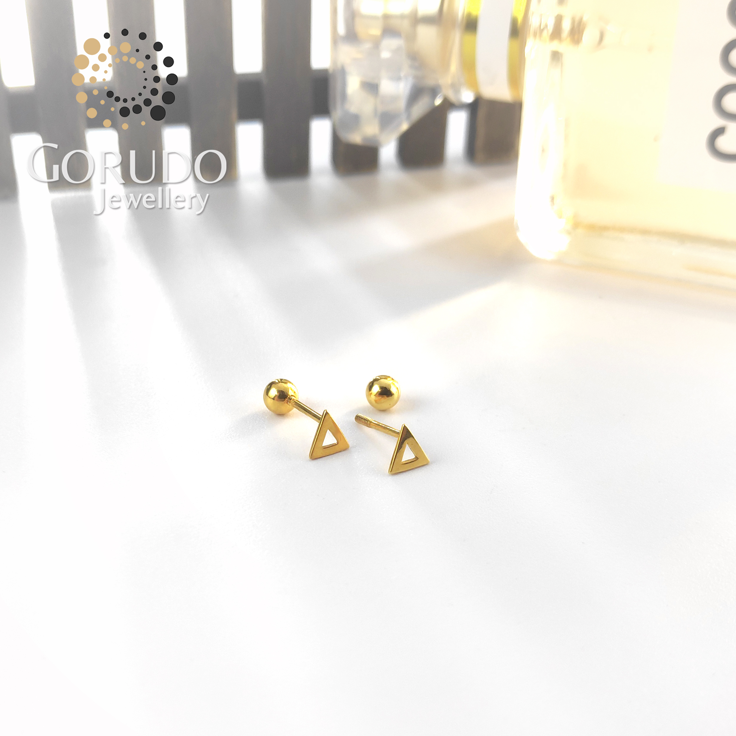 Gorudo Jewellery 916 Gold Triangle Design Ear Stud - TRE