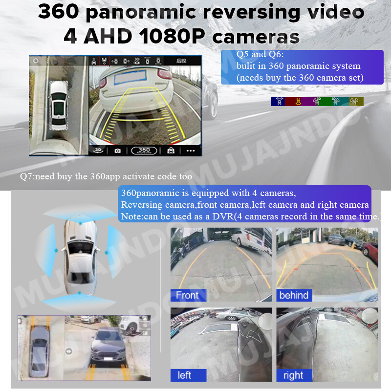 - 1, 360 panoramic view will be equipped with 4 cameras, installed on the front, back, and left and right sides. After processing by the machine, a real-time bird's-eye view video will be formed on the machine can choose buy 360 panorama