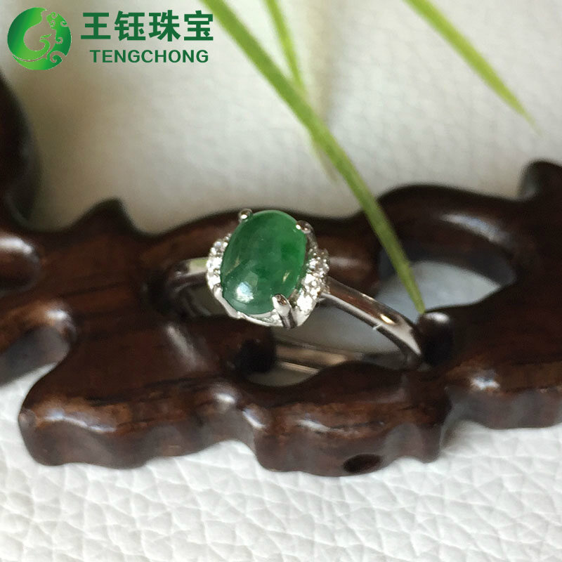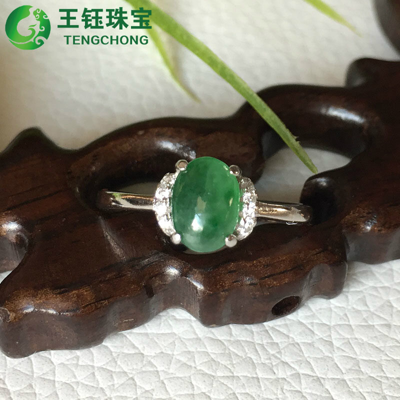 [Jade name] Myanmar natural A goods jade ice egg surface green ring 925 silver inlaid female ring