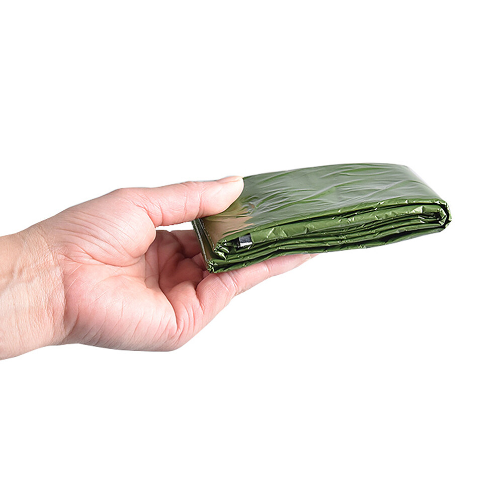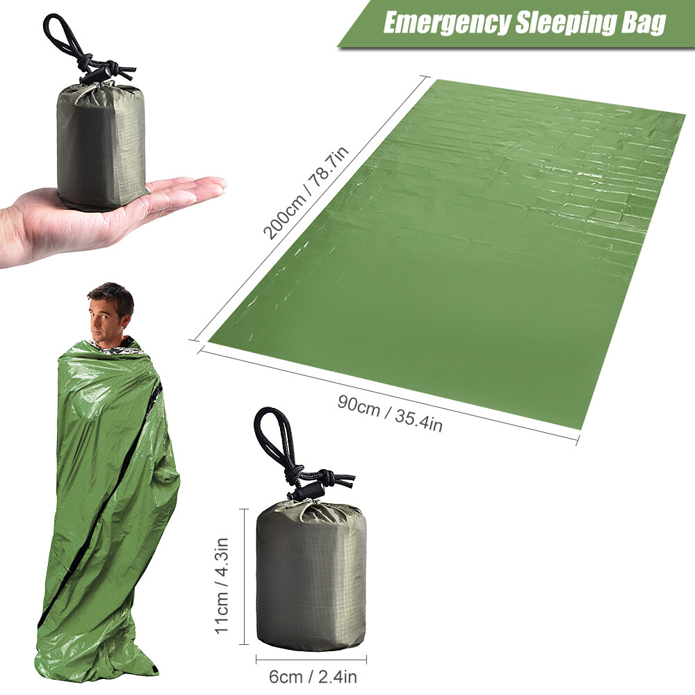 This sleeping bag features aluminized PE material and highly visible green color, very helpful in outdoor emergency situations. It is lightweight and convenient to carry, necessary gear for campers, hikers, backpackers.