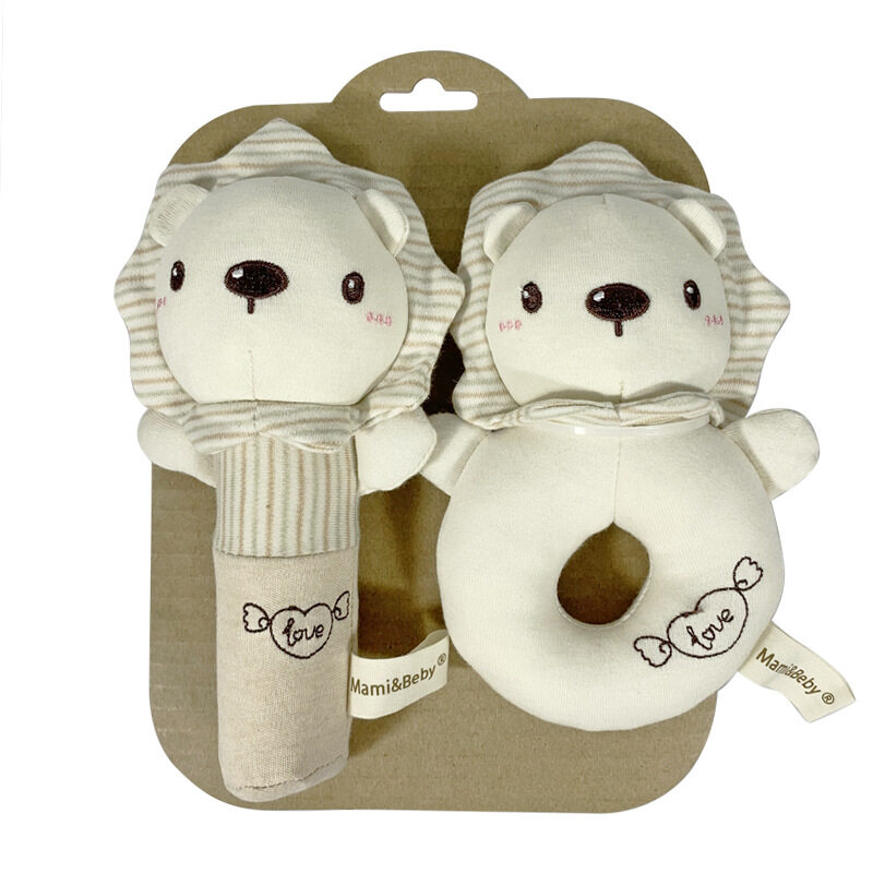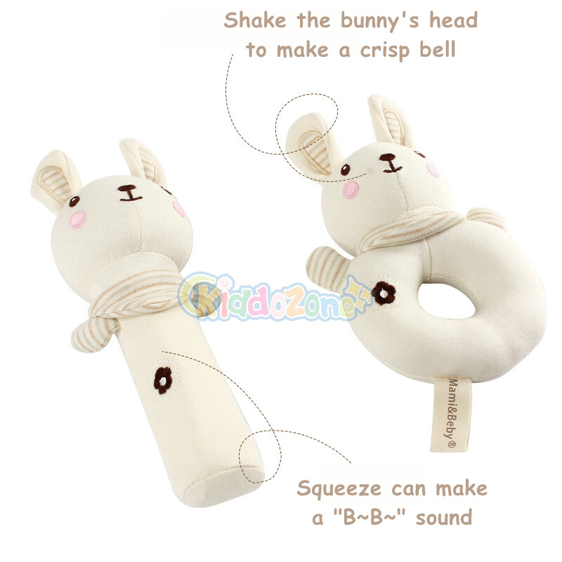 KiddoZone 2PCS Baby Rattle Kids Organic Cotton Soft Extrusion Rattle Cute Animal Appease Hand Rattle Plush Hand Holding Bell Toy BB Sound Educational Toys for 0-3 Year Boy Girls Baby