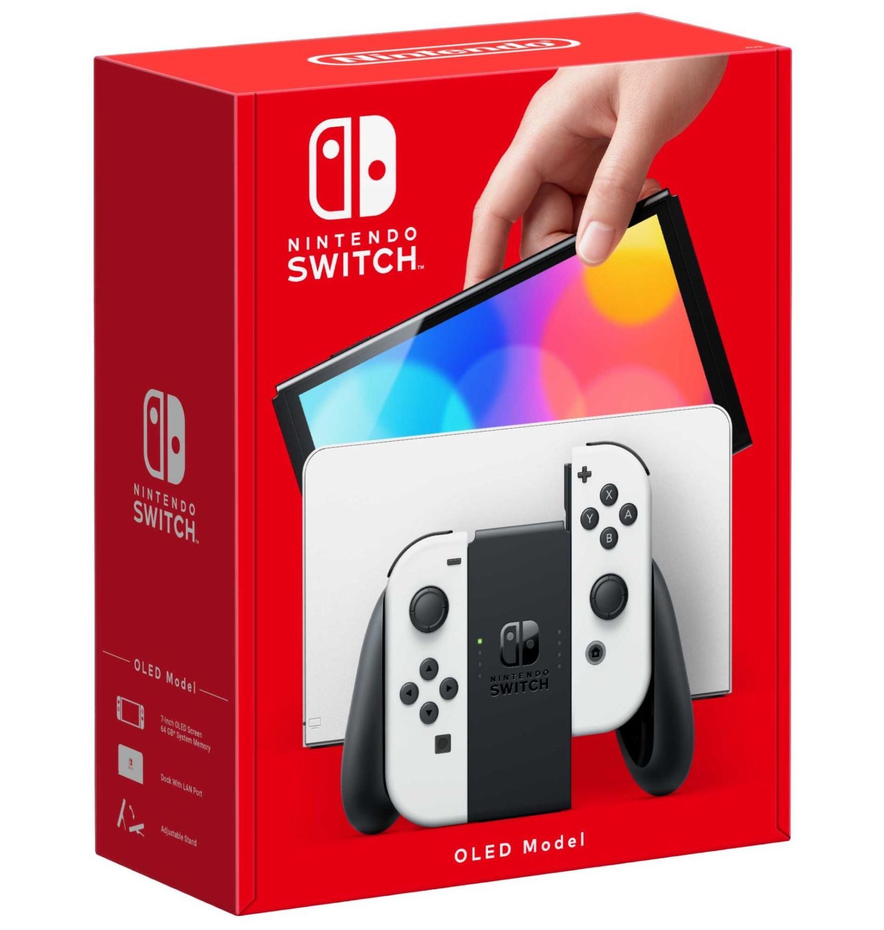 Play at home on the TV or on-the-go with a vibrant 7-inch OLED screen with the Nintendo Switch (OLED Model). In addition to the screen with vivid colors and sharp contrast, the Nintendo Switch (OLED Model) includes a wide adjustable stand, a dock with a wired LAN port for TV play, 32/64 GB of internal storage, and enhanced audio.