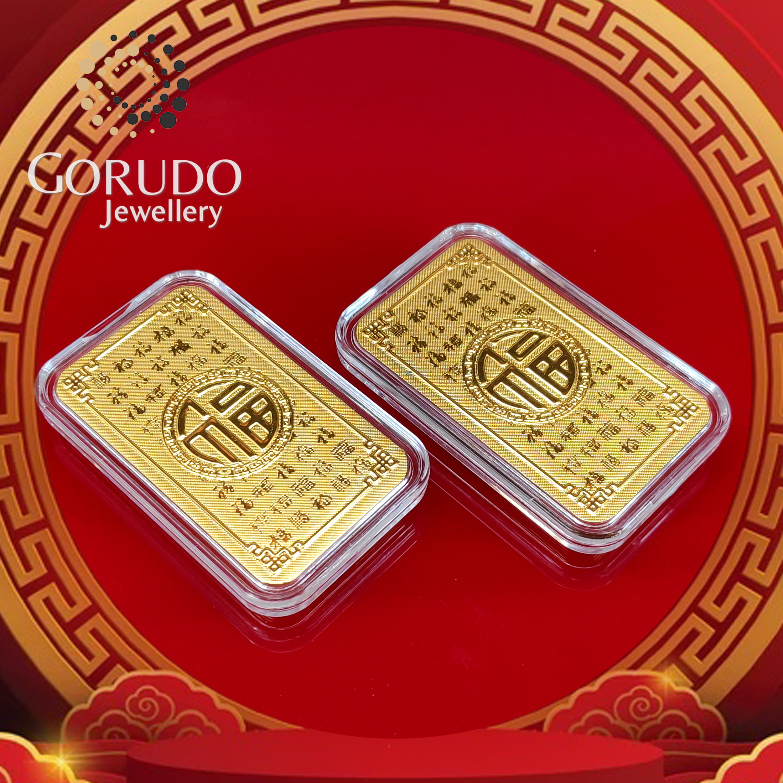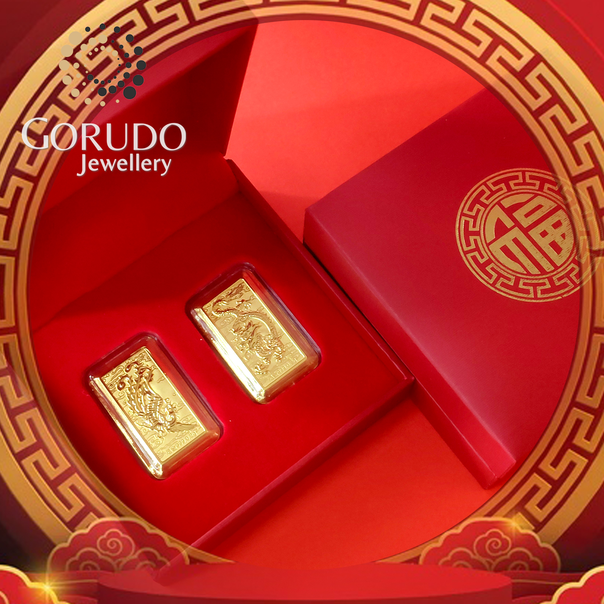 • 1 x Gorudo Jewellery 999 Dragon & Phoenix Pure Gold Ingot 0.2G X 2