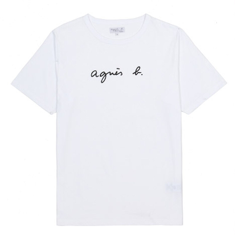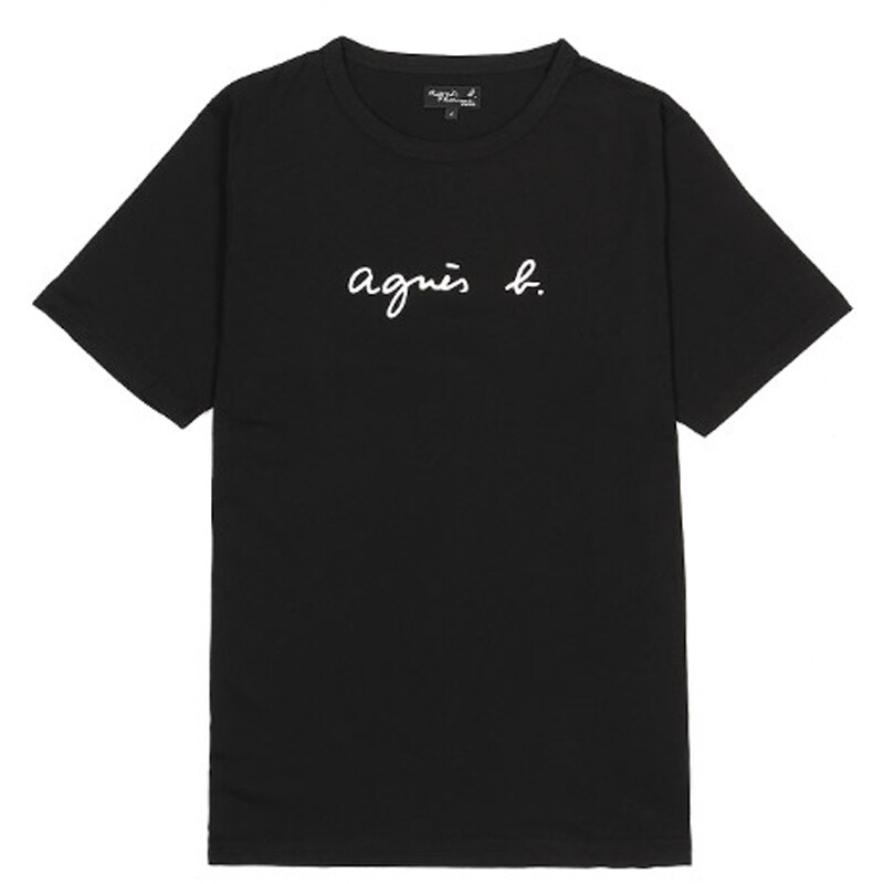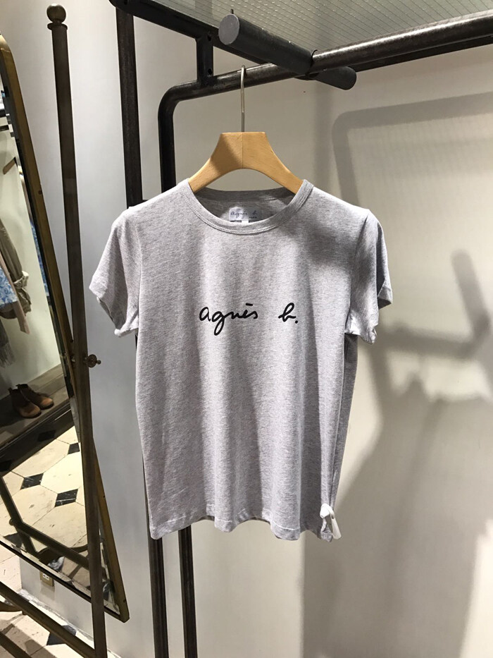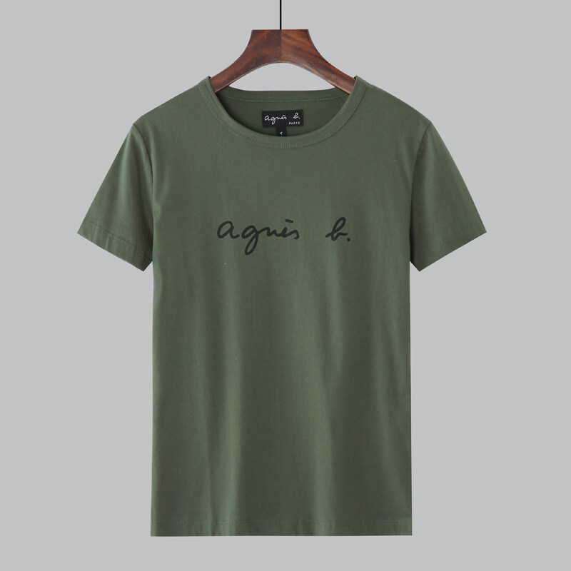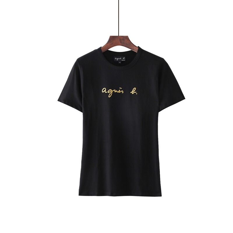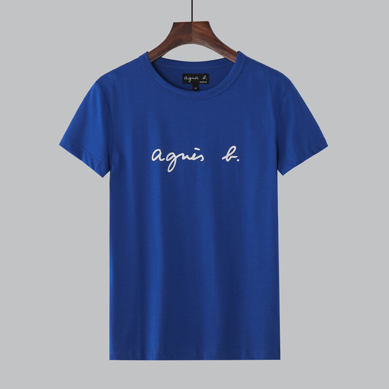 The New Agnes B Sketch PALEESIJA Letter Cotton Short-sleeved T-shirt Dark Blue Men's and Women's Wear