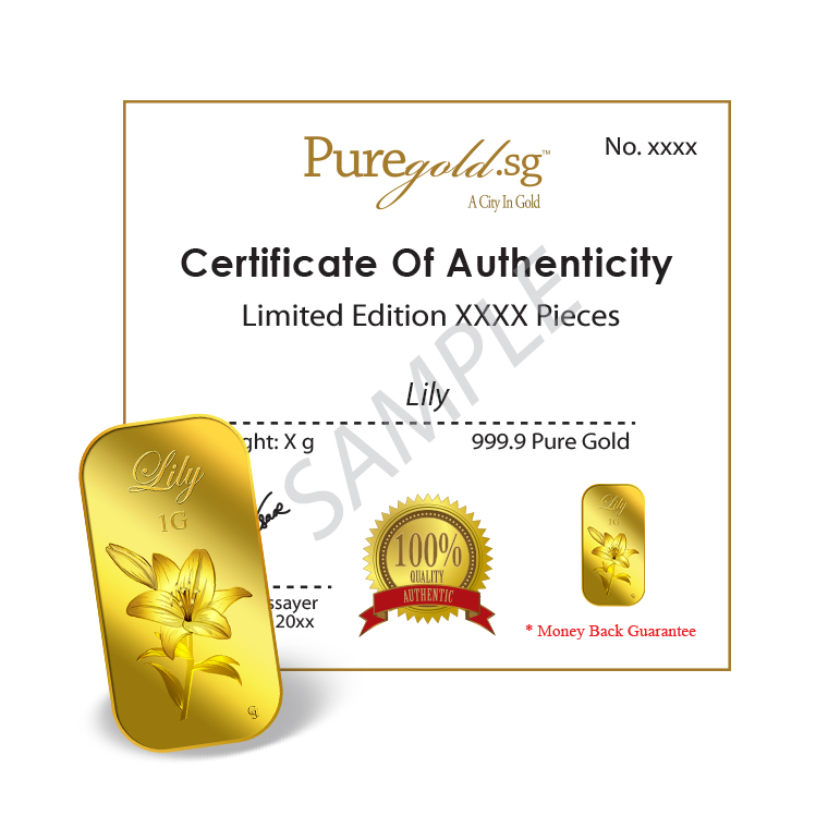 Puregold 1g Lily 999.9 Pure Gold Bar