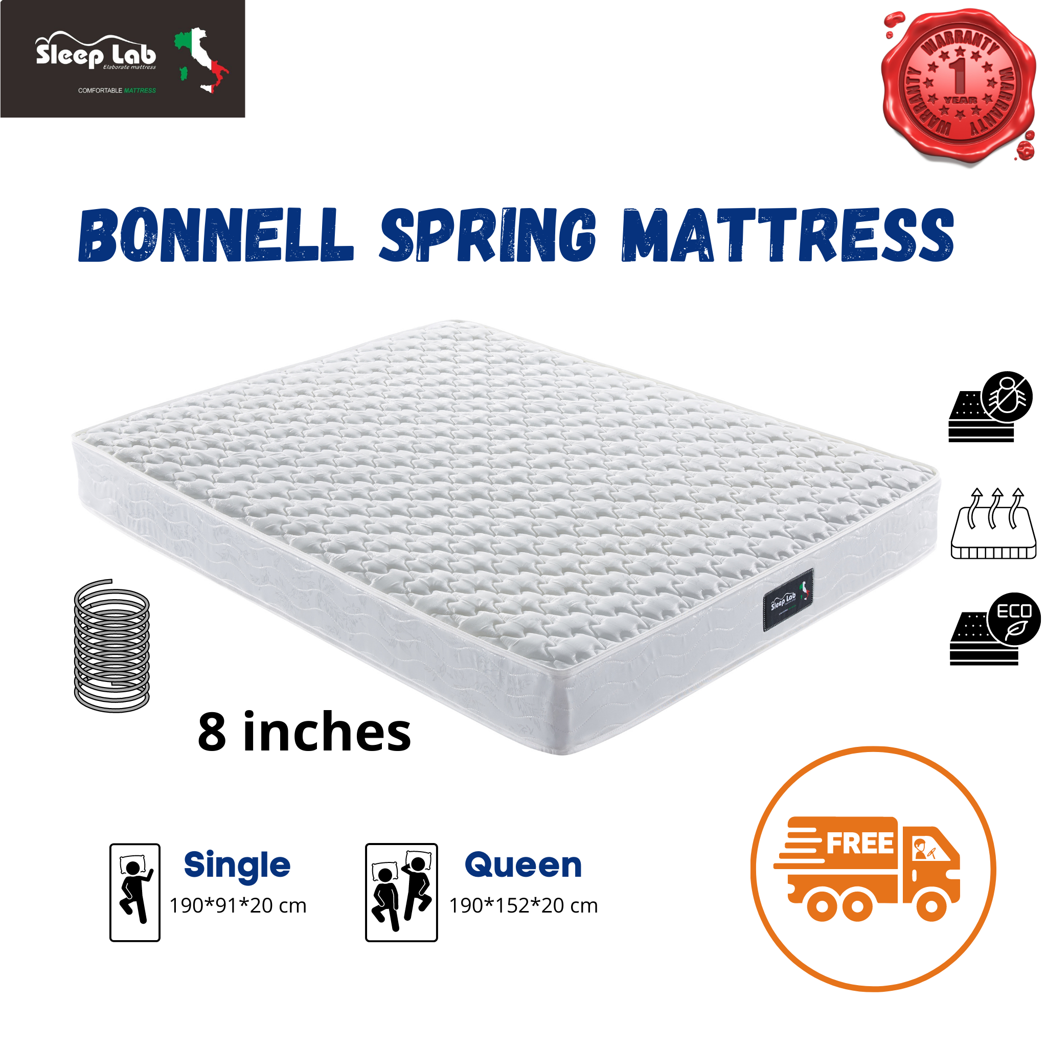Sleep Lab bonnell spring mattress (white)