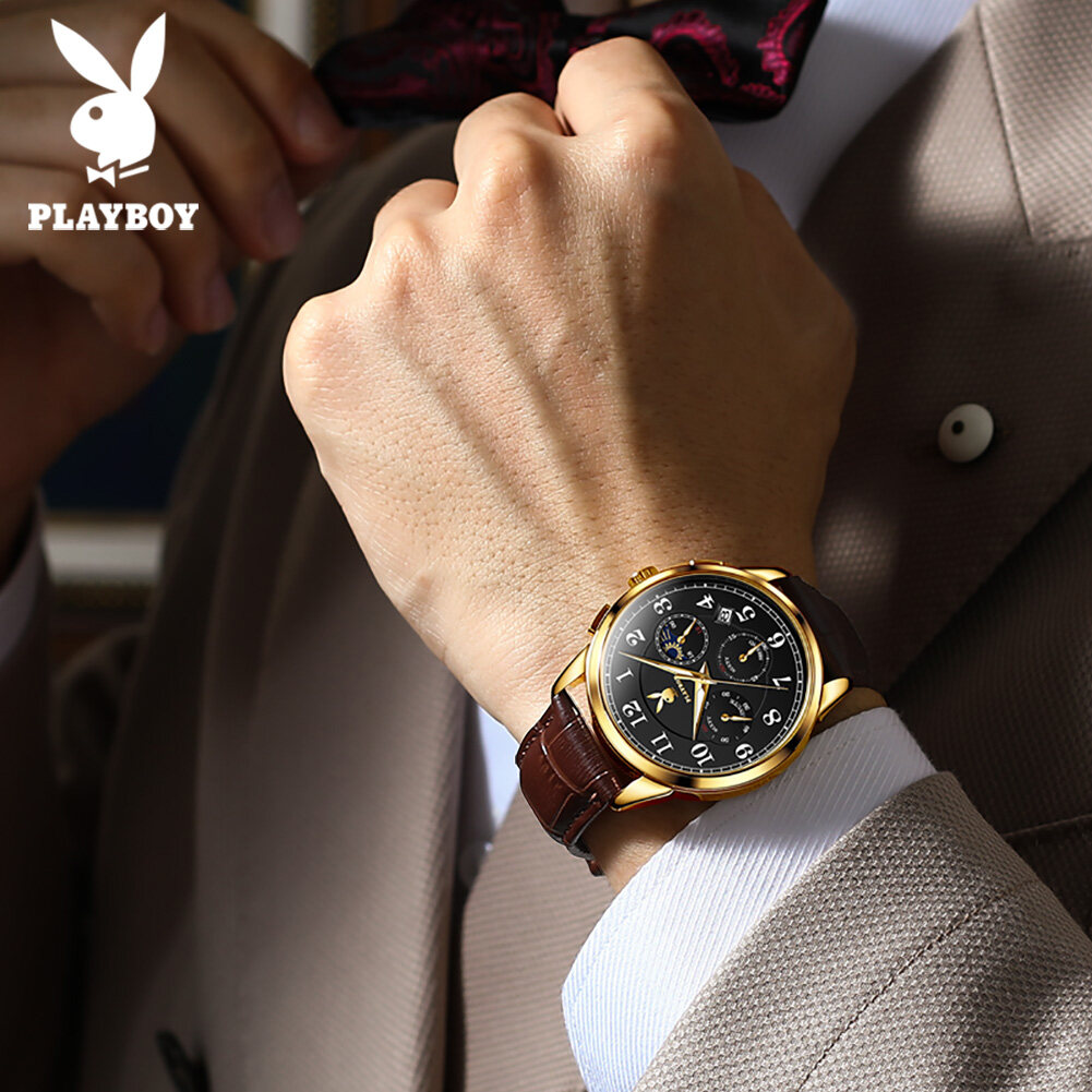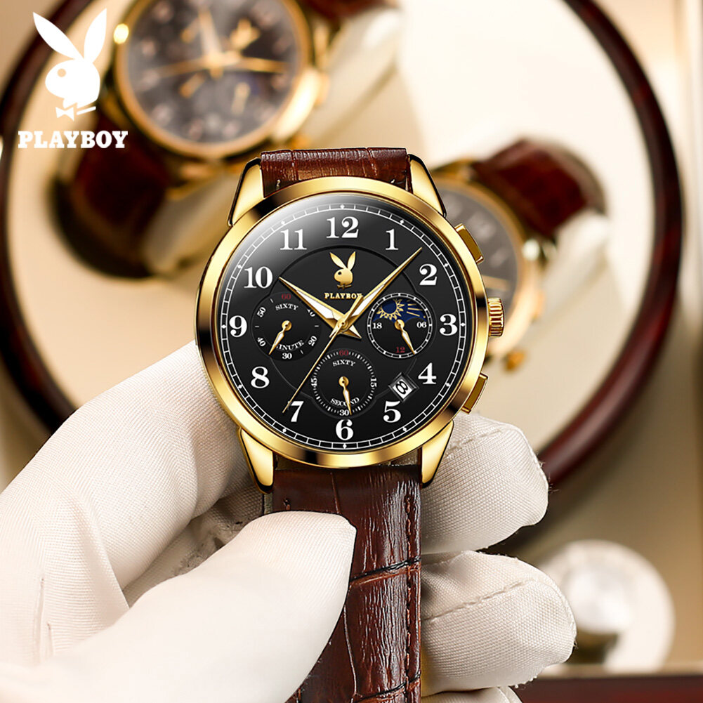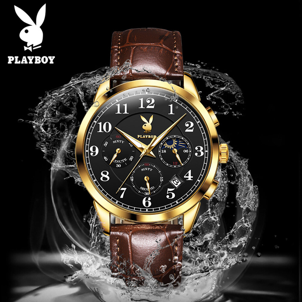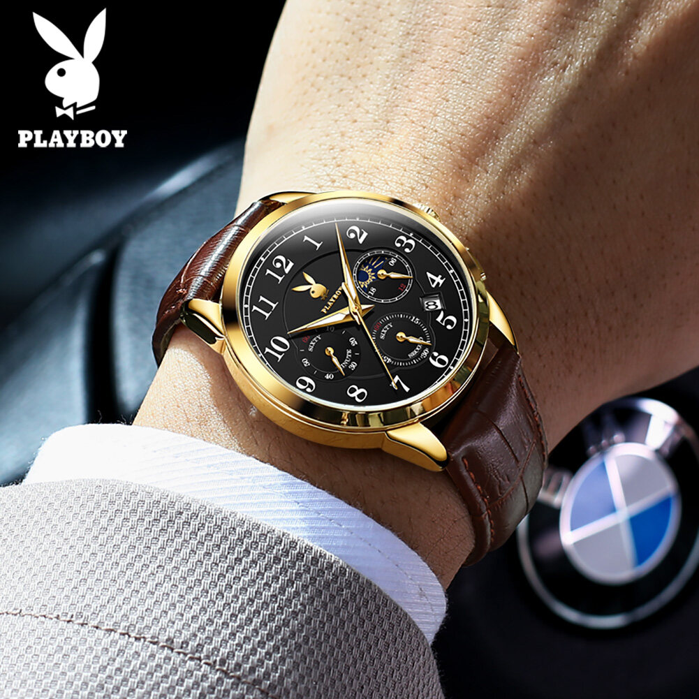 PLAYBOY Watch men Original Water proof Gift for men set with box Genuine original import Genuine Leather Japanese Movement Multifunction Watch