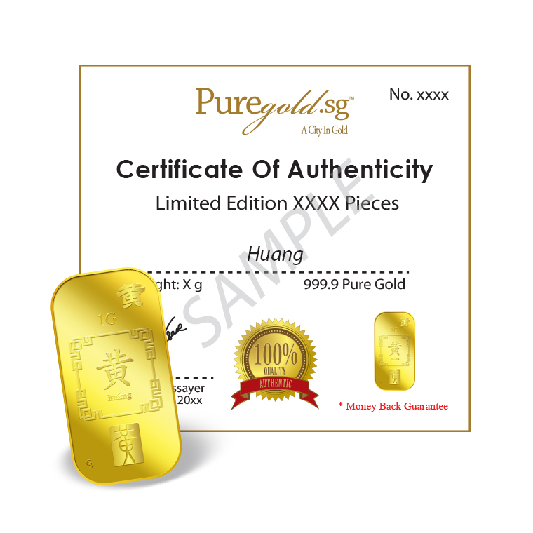 Puregold 1g Huang 黄 999.9 Pure Gold Bar