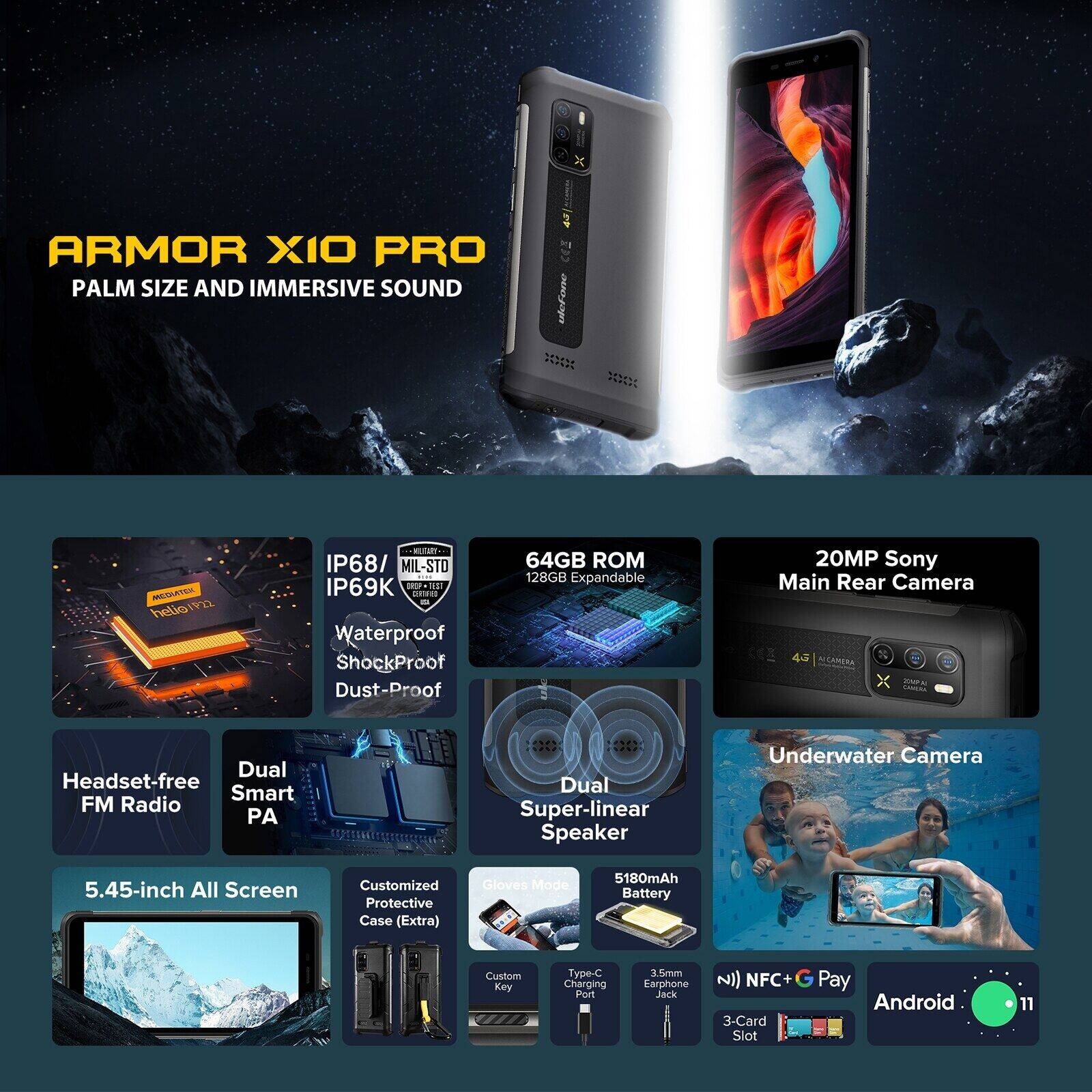 【Official shop】Ulefone Armor X10 Pro Rugged Phone Android 11 Mobile Helio P22 Global Version 4GB 64GB 5.45'' Screen 5180mAh Smartphone OTG NFC