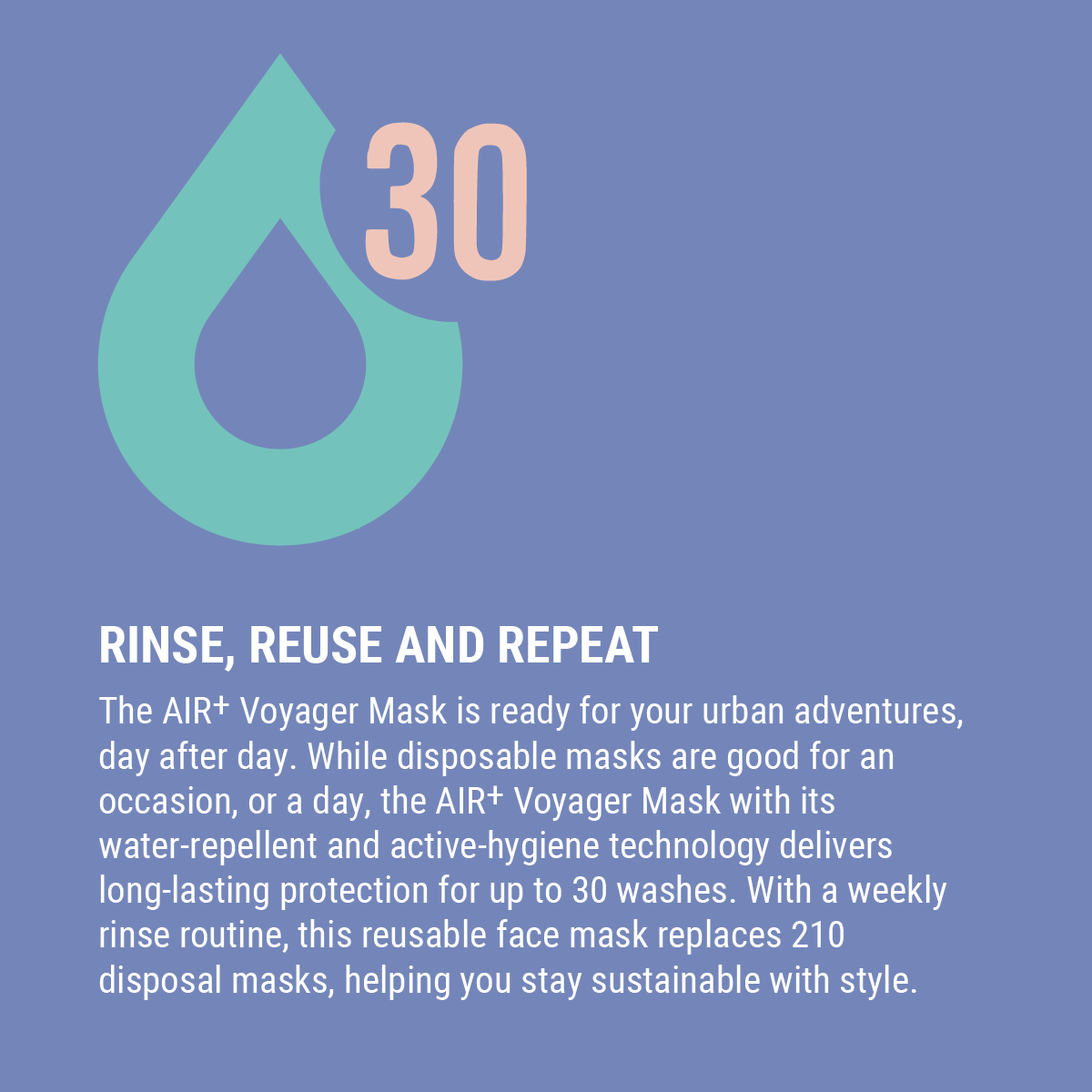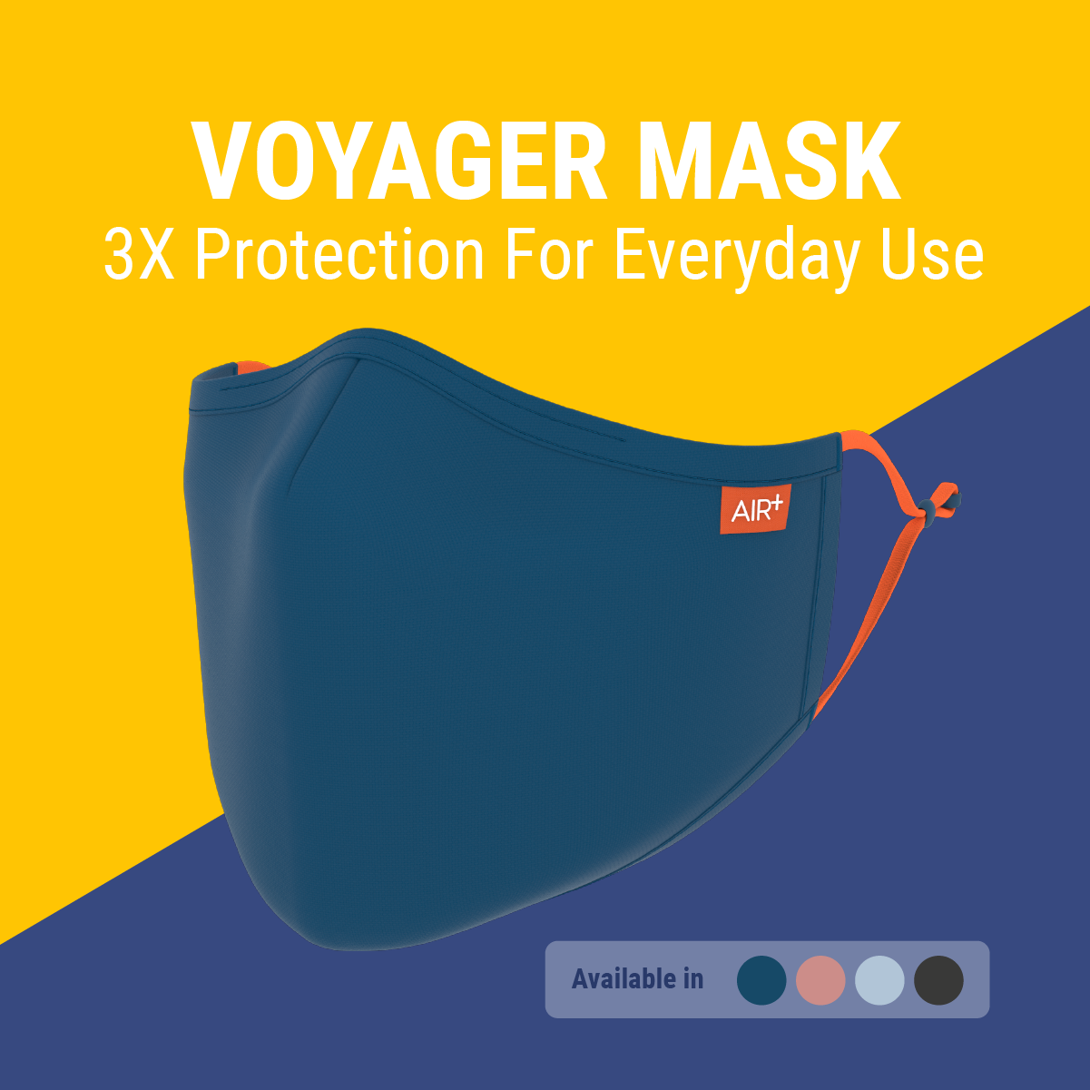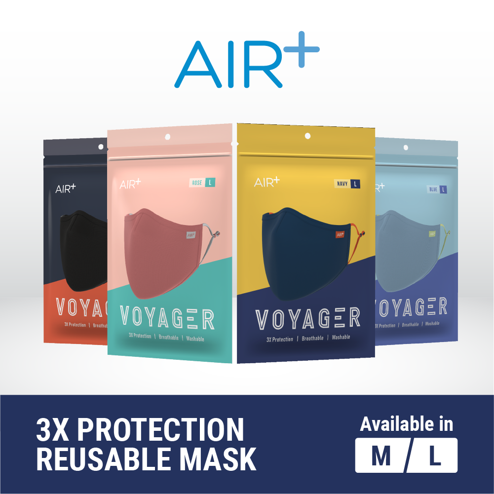 AIR⁺ Voyager | Reusable Mask | M & L Sizes | 1PC | Washable | Anti-Microbial | Water-Repellent | Adjustable Ear Loops