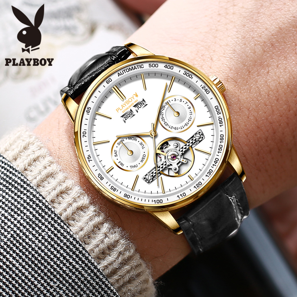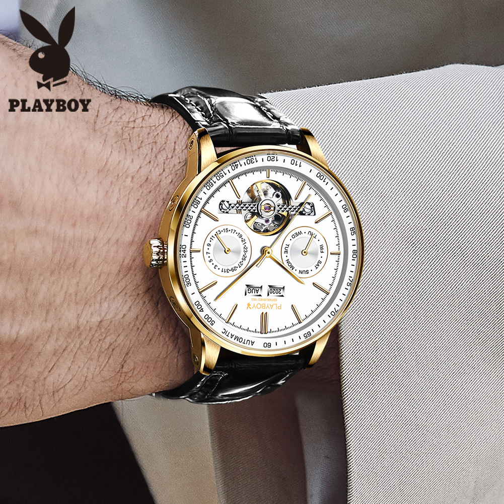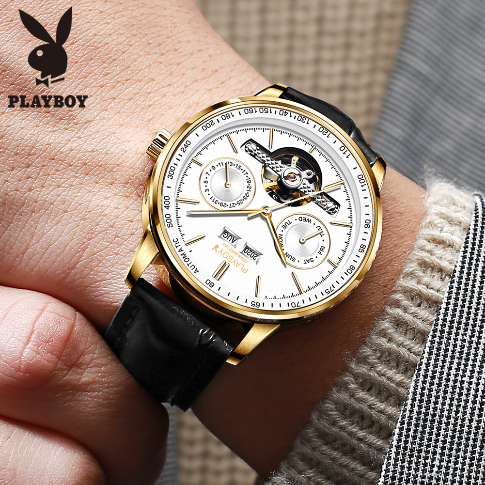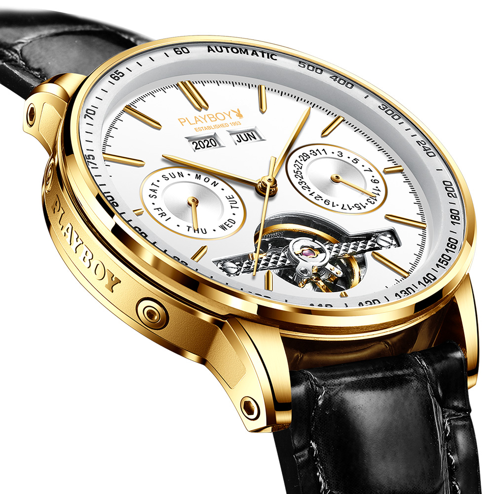 PLAYBOY Watches For Men Automatic Mechanical Luxury Brand Original Fashion Sports Calendar Multi-Function 50 Meters Waterproof