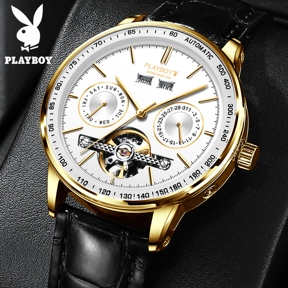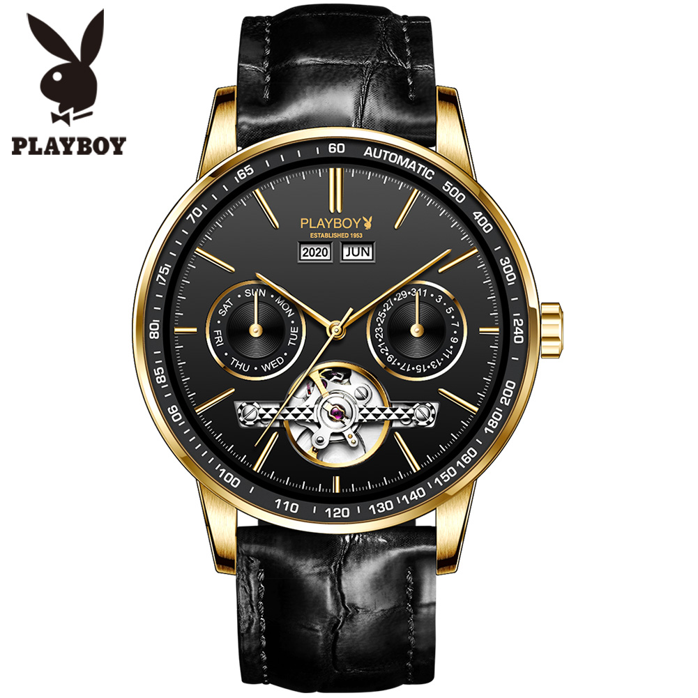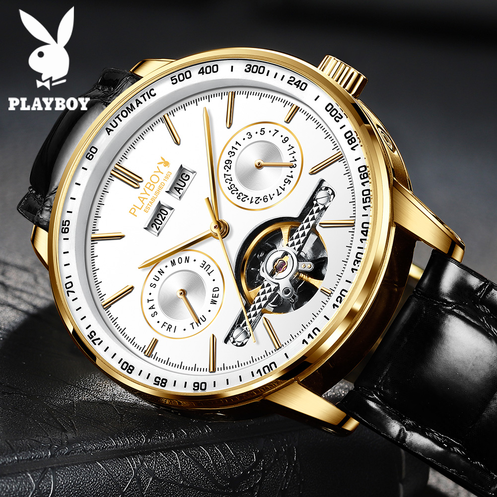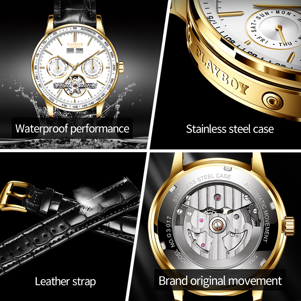 PLAYBOY Watches For Men Automatic Mechanical Luxury Brand Original Fashion Sports Calendar Multi-Function 50 Meters Waterproof