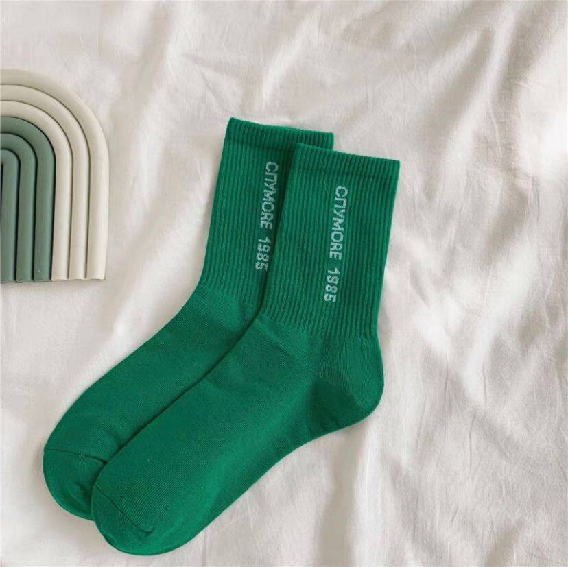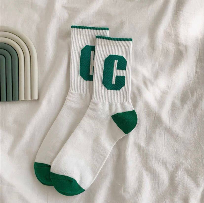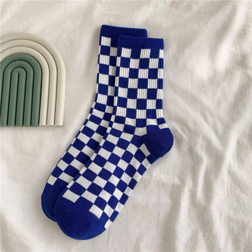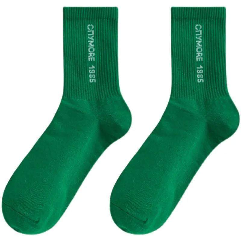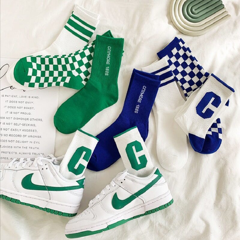 Korean men mid cotton socks ins tide checkerboard green elite long socks for men women socks
