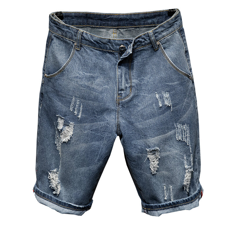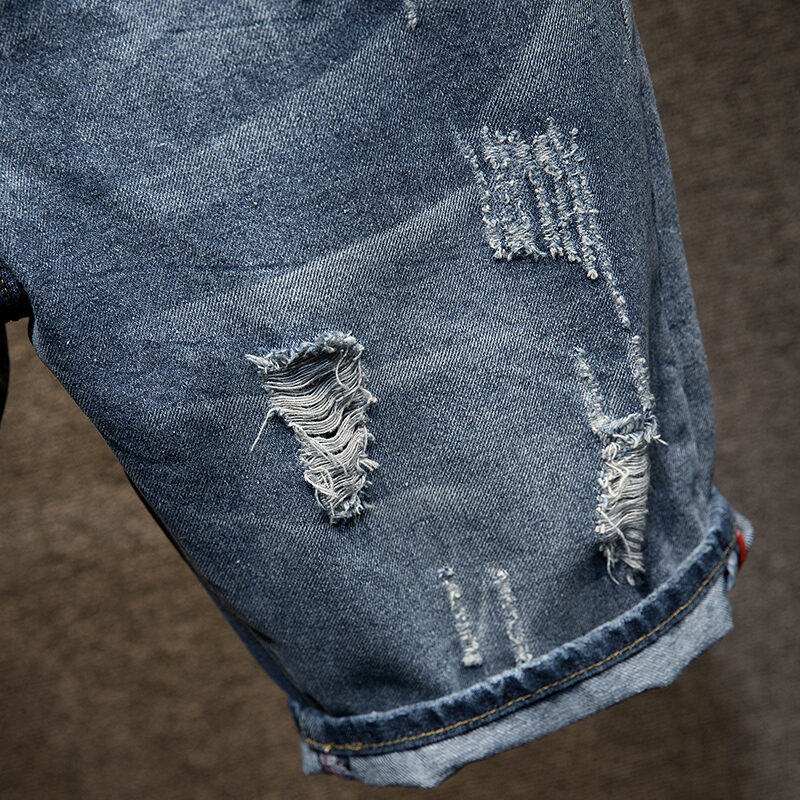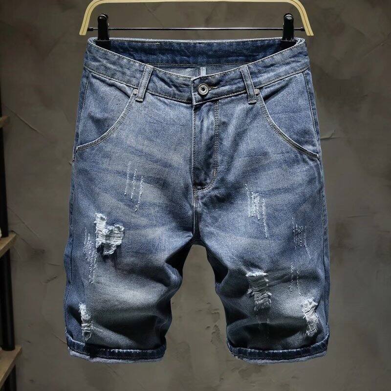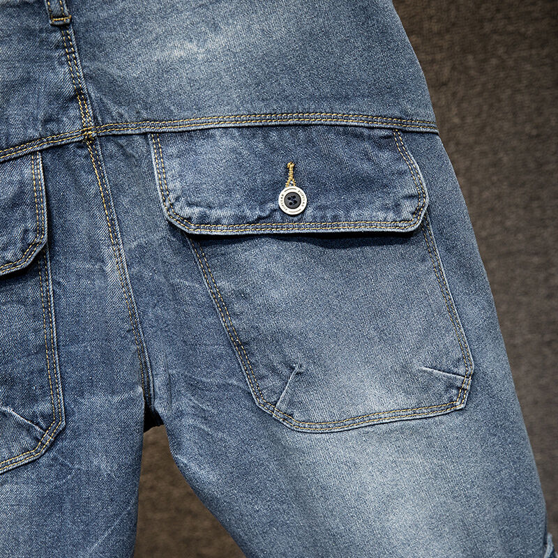 New Arrival Multi-Pocket Overalls Denim Shorts Men's Fashion Brand Loose Straight Shorts Men's Summer Thin Ripped Pants