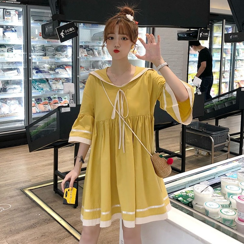 Dress Female Summer Student College Style Korean Version Loose Navy Collar Flared Sleeve Cute Sweet Dress Small