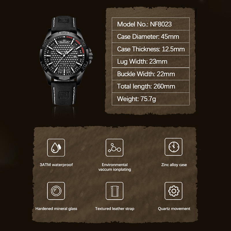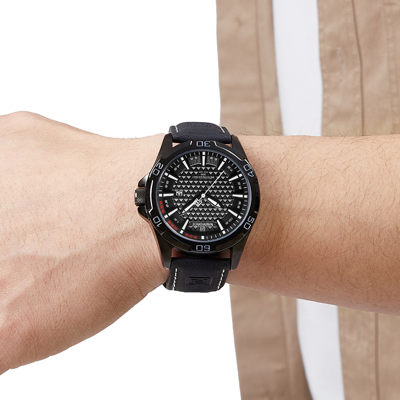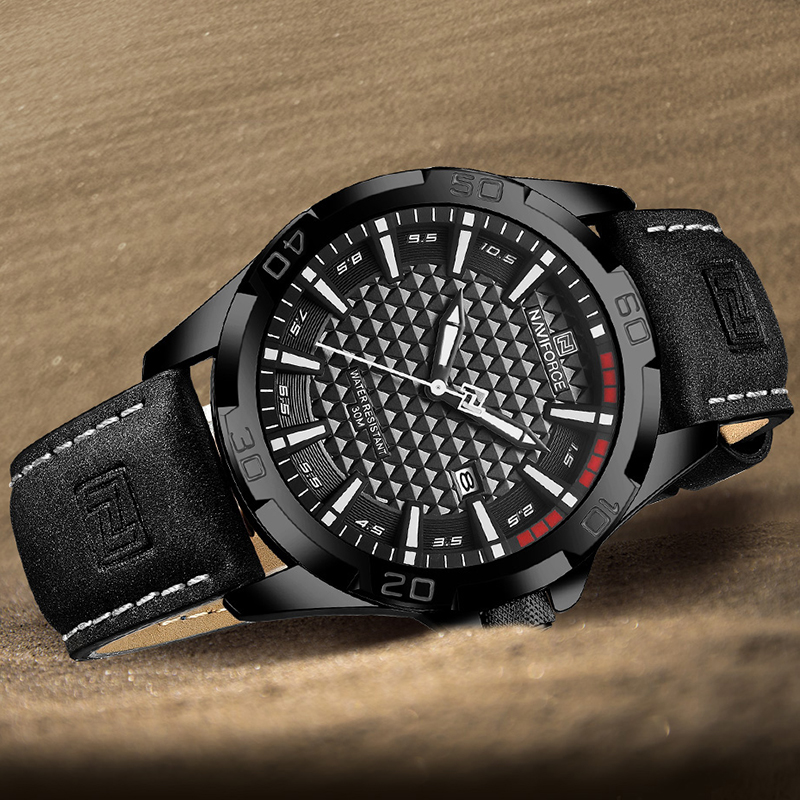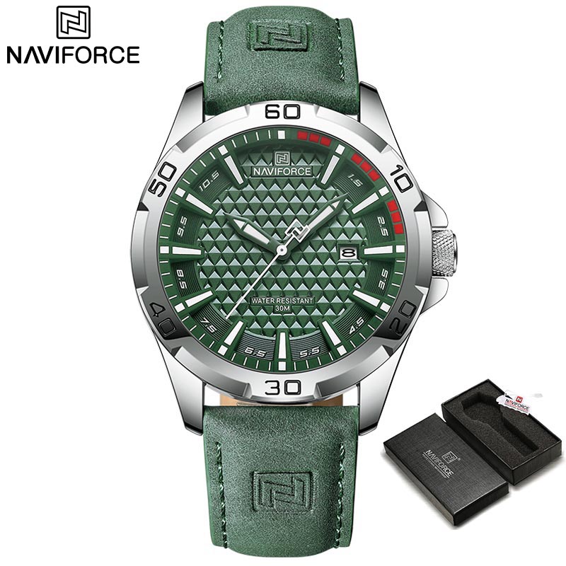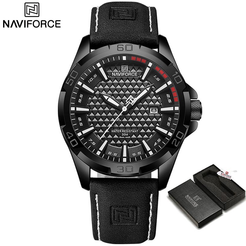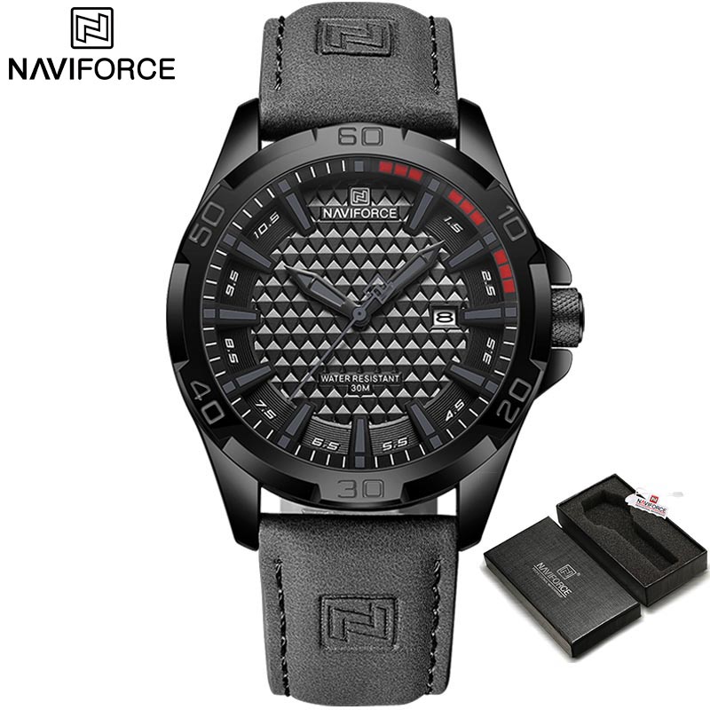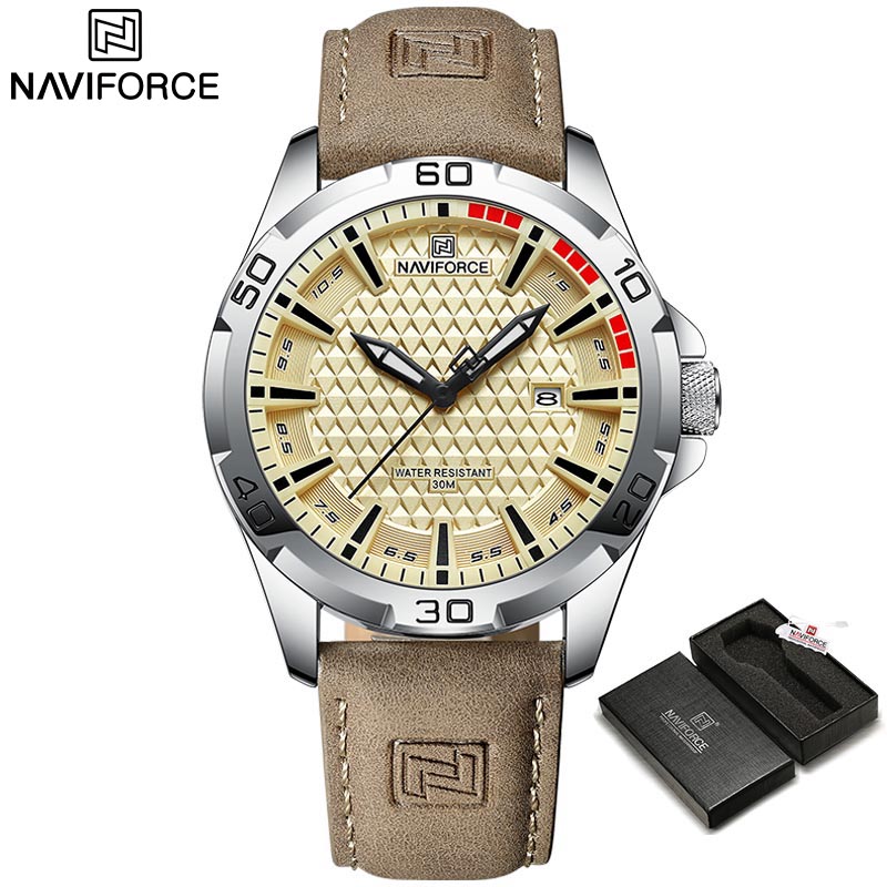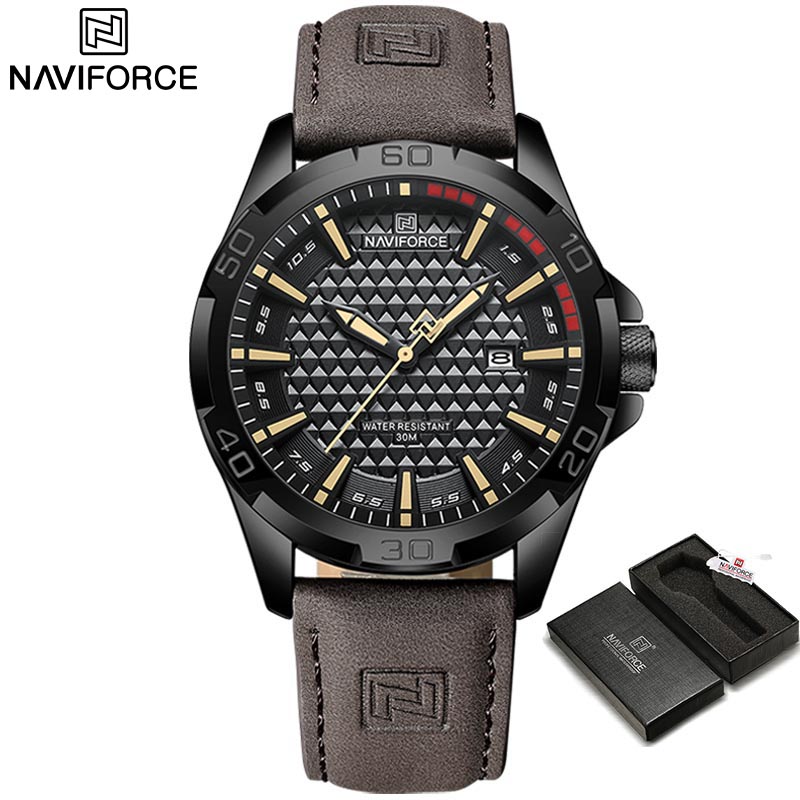 NAVIFORCE Top Luxury Brand Men's Watches Leather Strap Classic Quartz Waterproof Clock Business Casual Date Creative Men Watch