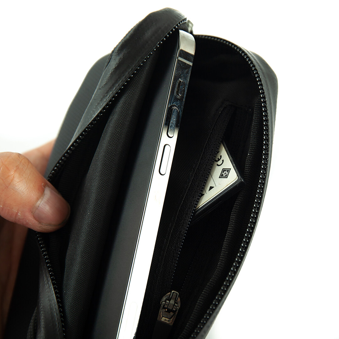 ● The case features a soft divider to keep cards separate from your smartphone, and a zippered pocket for smaller valuables like coins and keys.