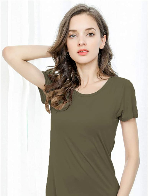 - Features: Built-in shelf padded bra for women, solid color, short sleeve, scoop neck.