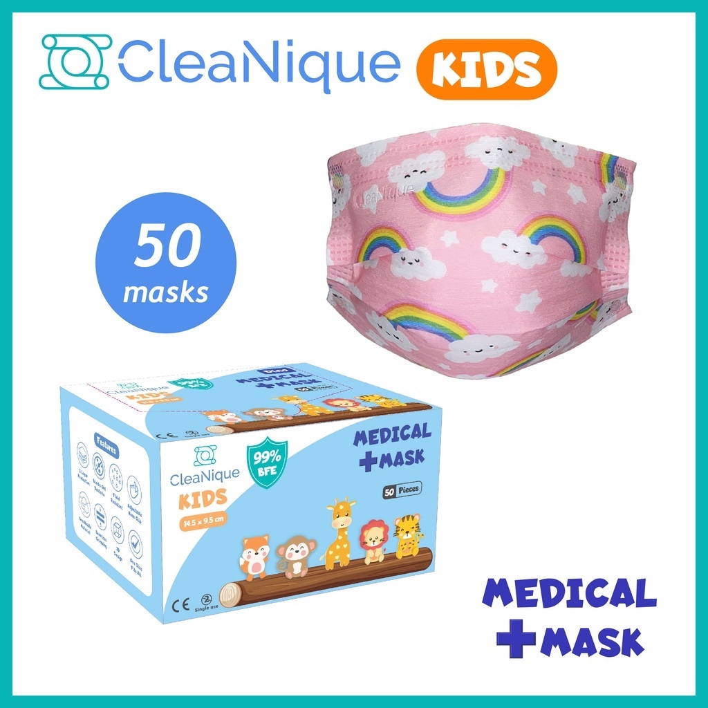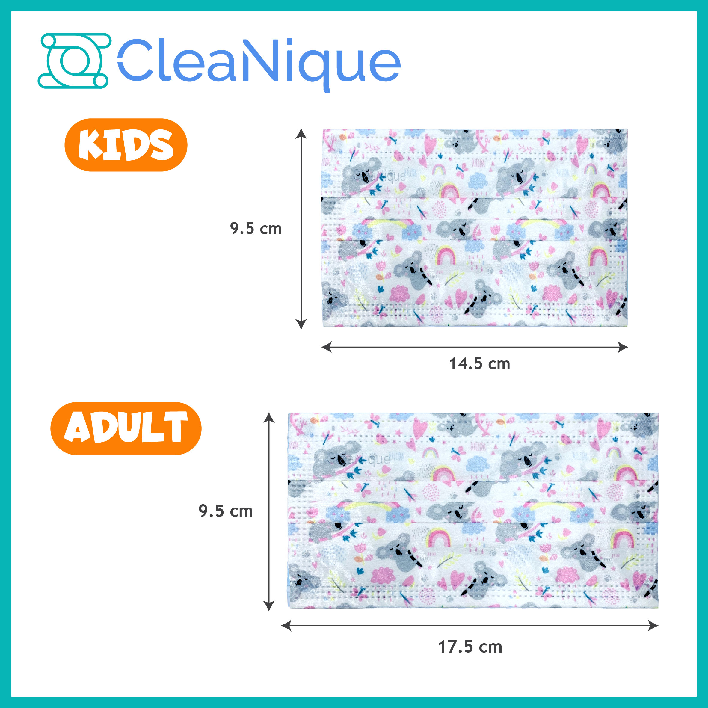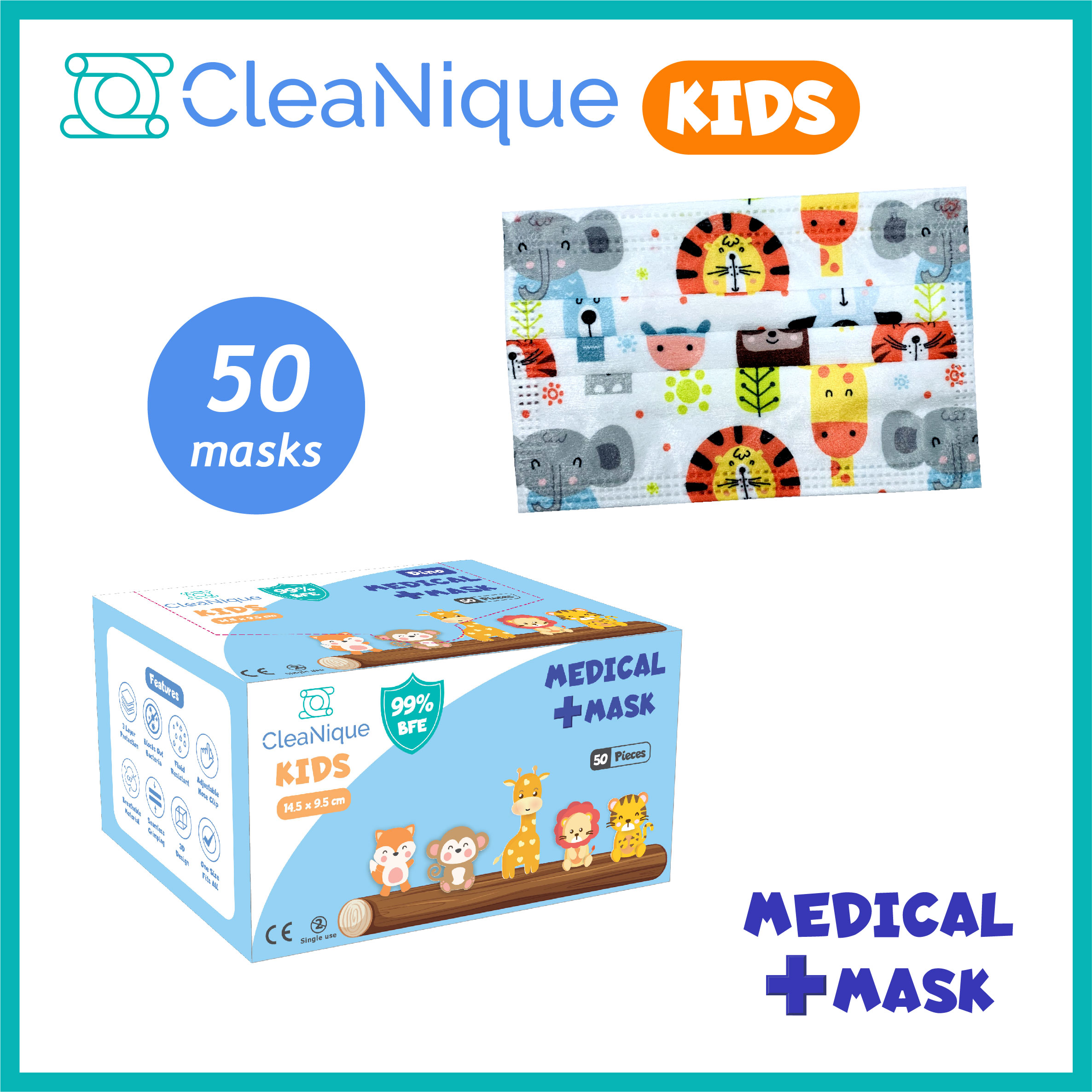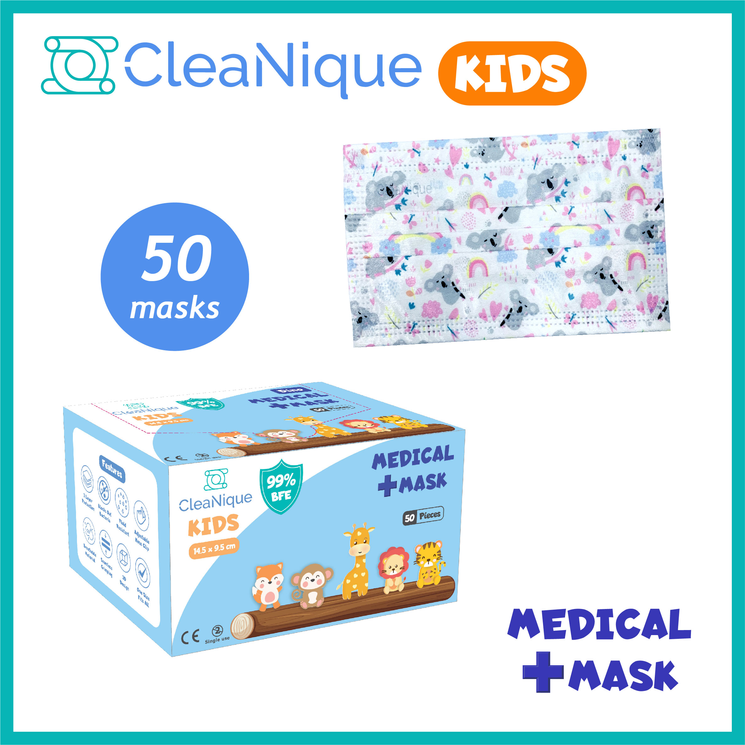 CleaNique 3-Ply * Design Kids * Medical Face Mask EN 14683 SGS BFE 99% Flat Ear Loop 50 Pcs