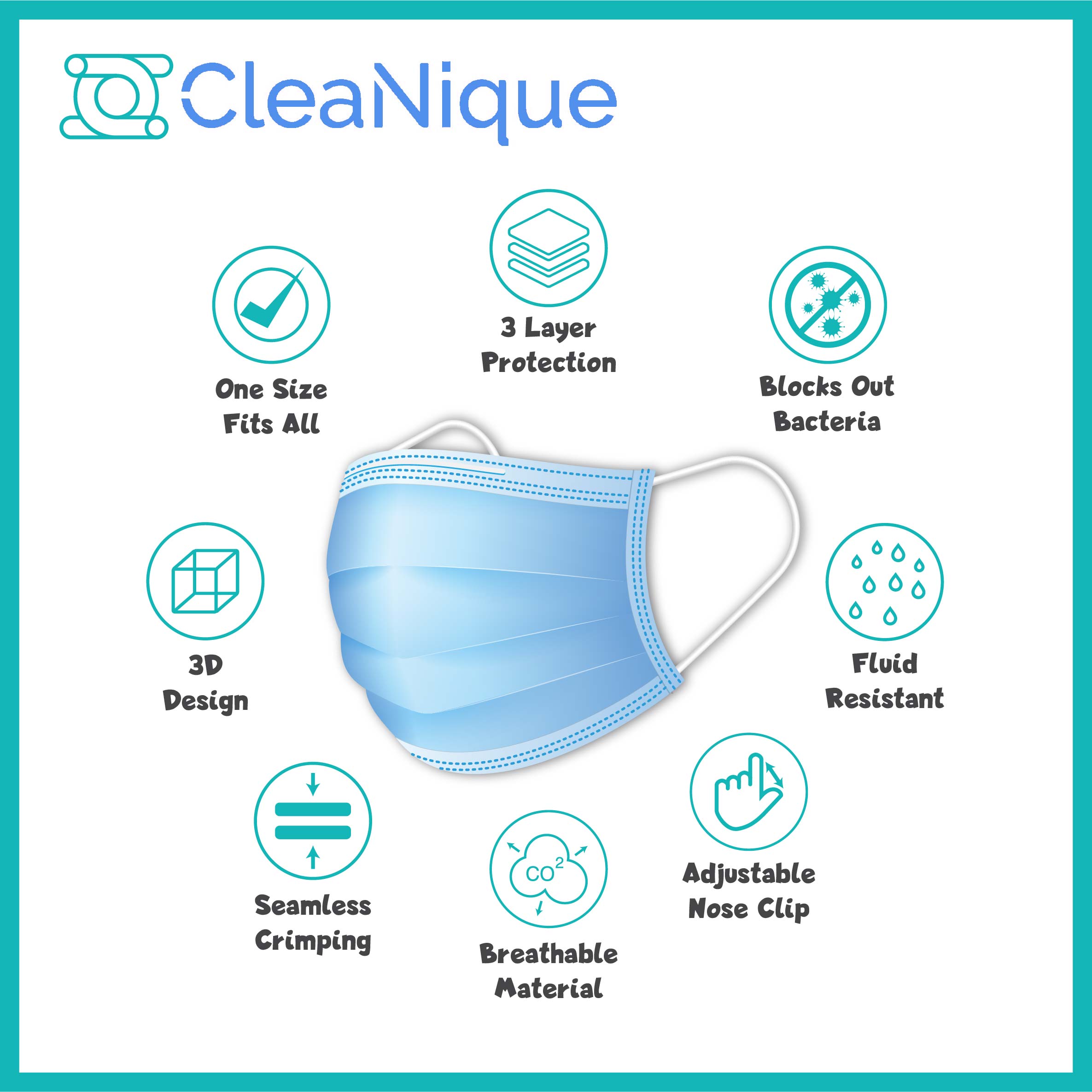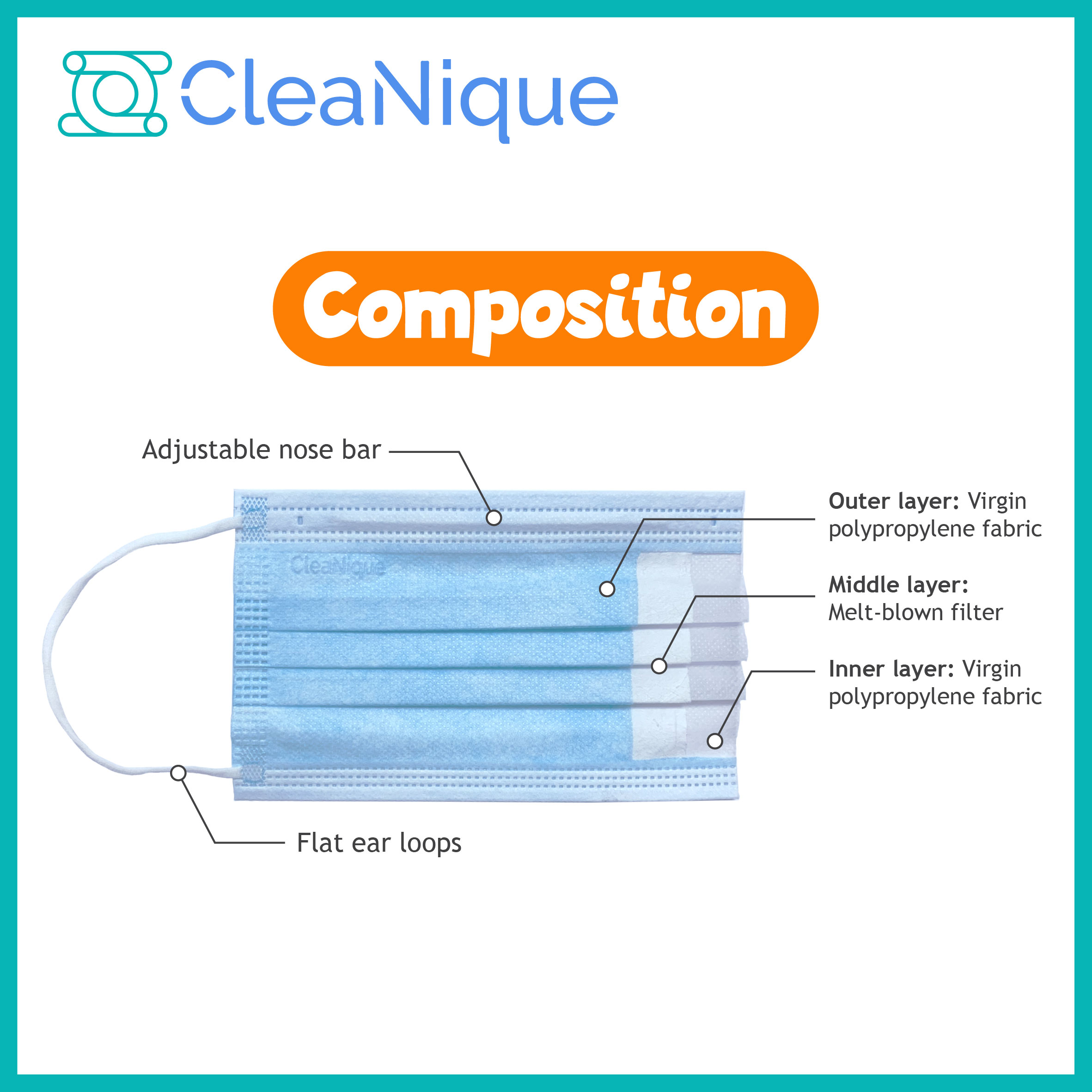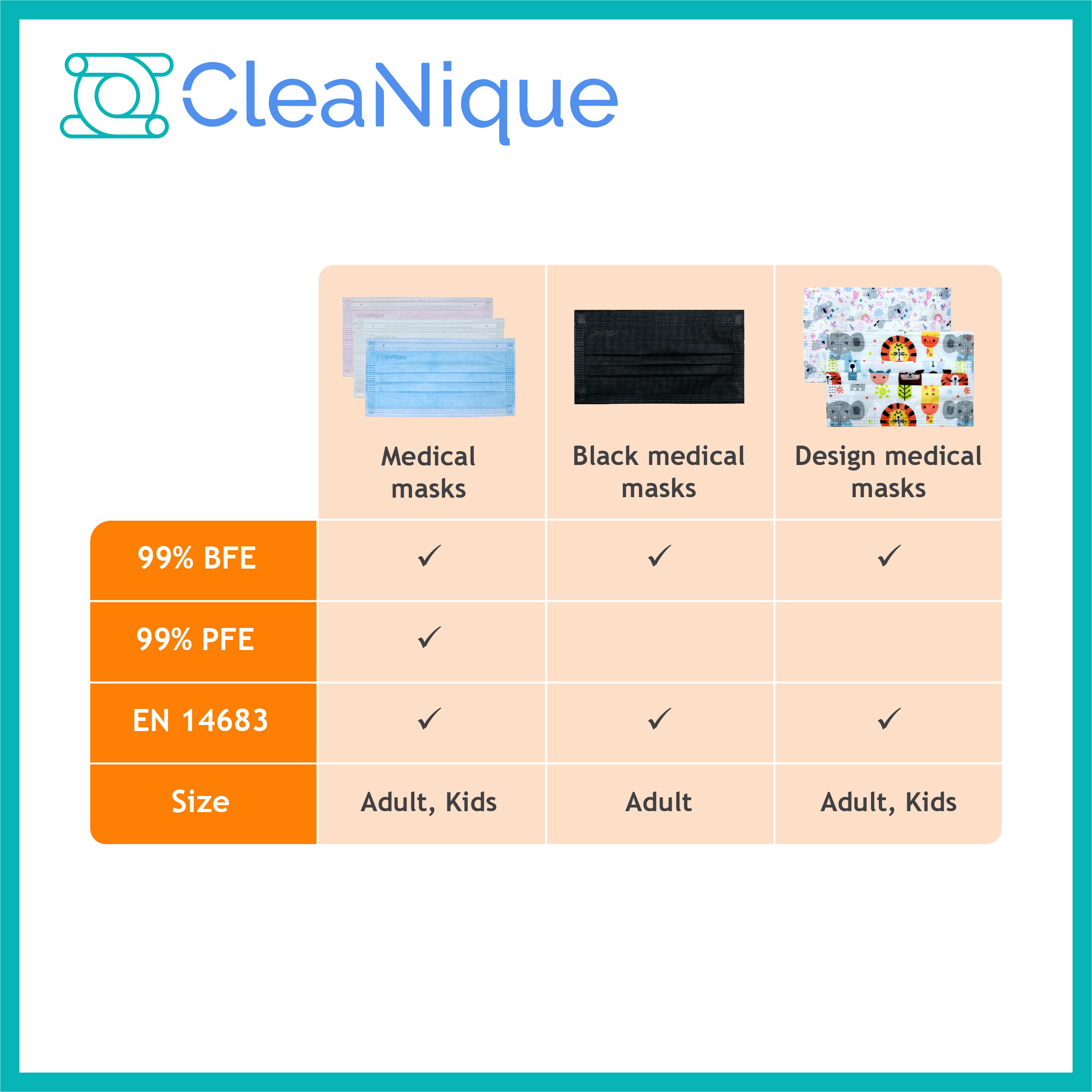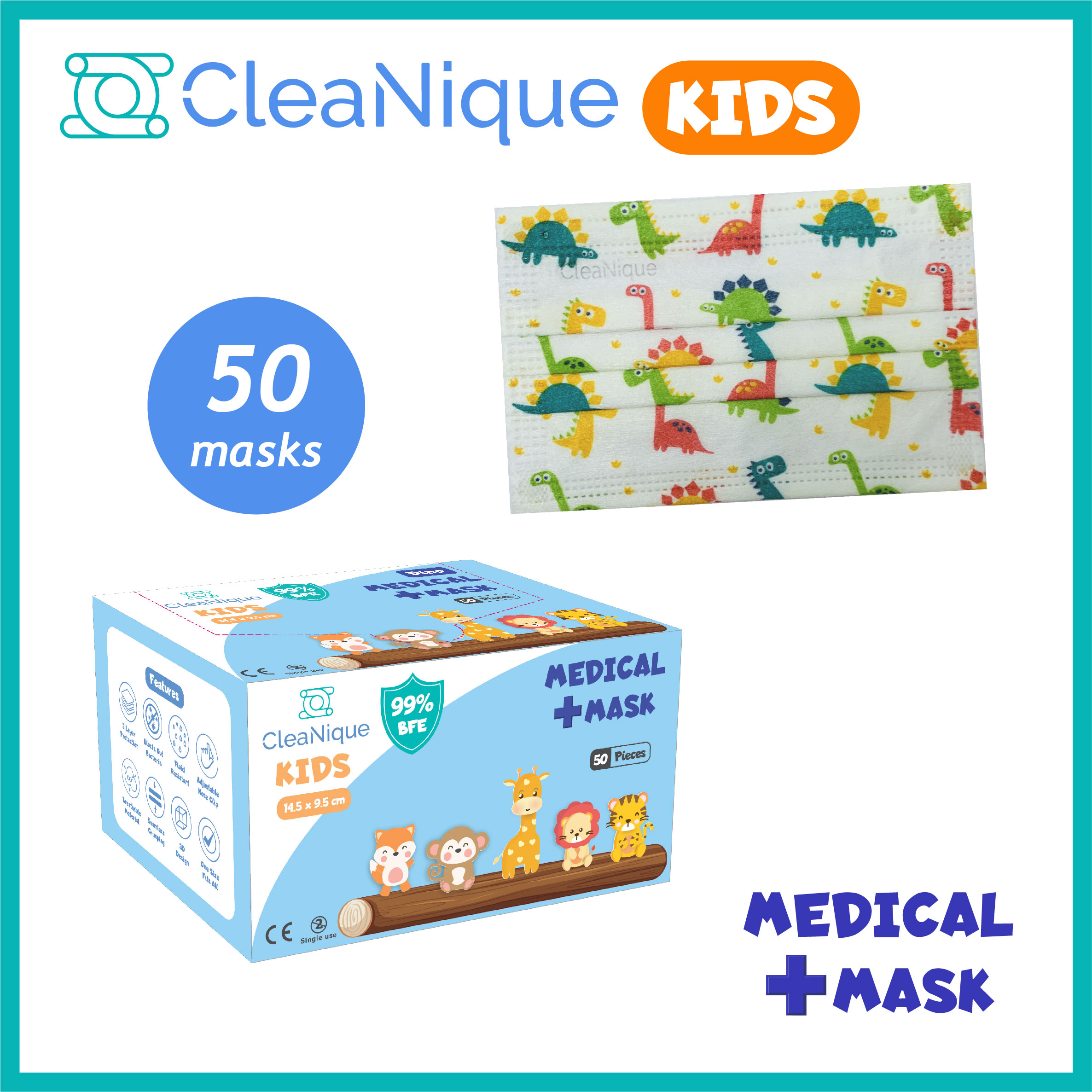 CleaNique 3-Ply * Design Kids * Medical Face Mask EN 14683 SGS BFE 99% Flat Ear Loop 50 Pcs