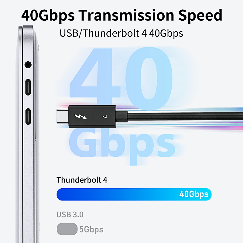 Supports Max 100W Powerful Charging, 40Gbps Fast Data Transfer, and 8K Media Display