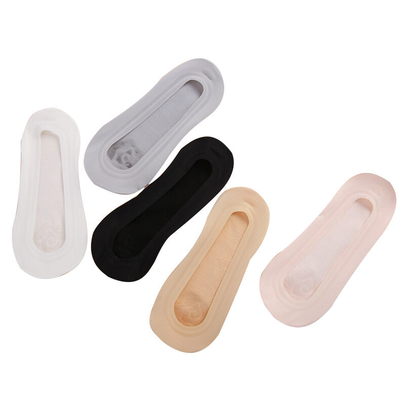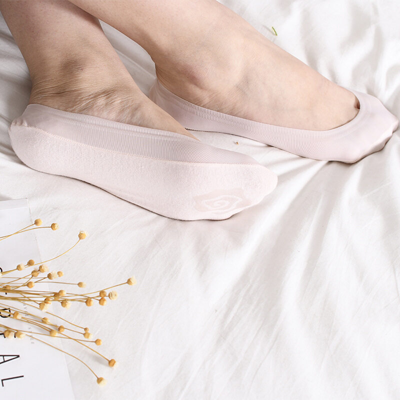Yingbao 1 pair Low Cut Invisible Ankle Socks Woman Anti Slip Office Ice Silk No Show Summer Seamless Silicone Ladies Sock Black White Grey Pink
