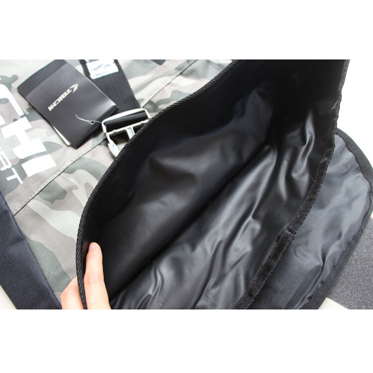 Suitable for outdoor sports, riding, traveling, etc., rainy day motorcycle activities and riding *Waterproof main compartment *External pocket with flap (waterproof) *Easy to access roll-up and strap closure on main compartment *Front strap Zippered exterior pocket *Adjustable side compression straps