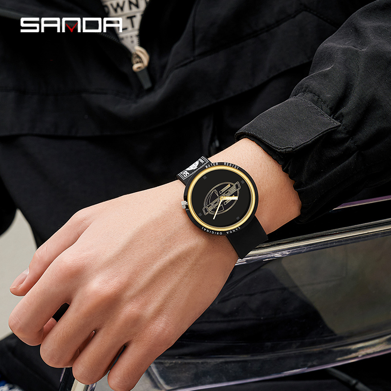 SANDA Quartz Watch Men Luxury Sport Men's Watches Silicone Strap Waterproof Clock For ashion Dress Wristwatch Girls