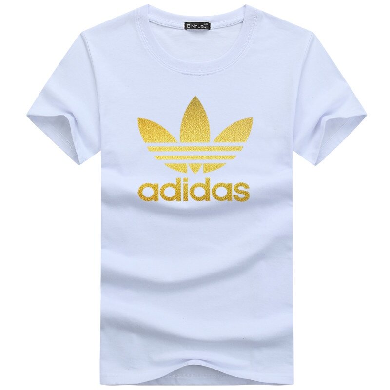Men Fashion T-shirt Crew Ne Sports Short Sleeve Top with Golden Classic Clover Logo Print Pattern