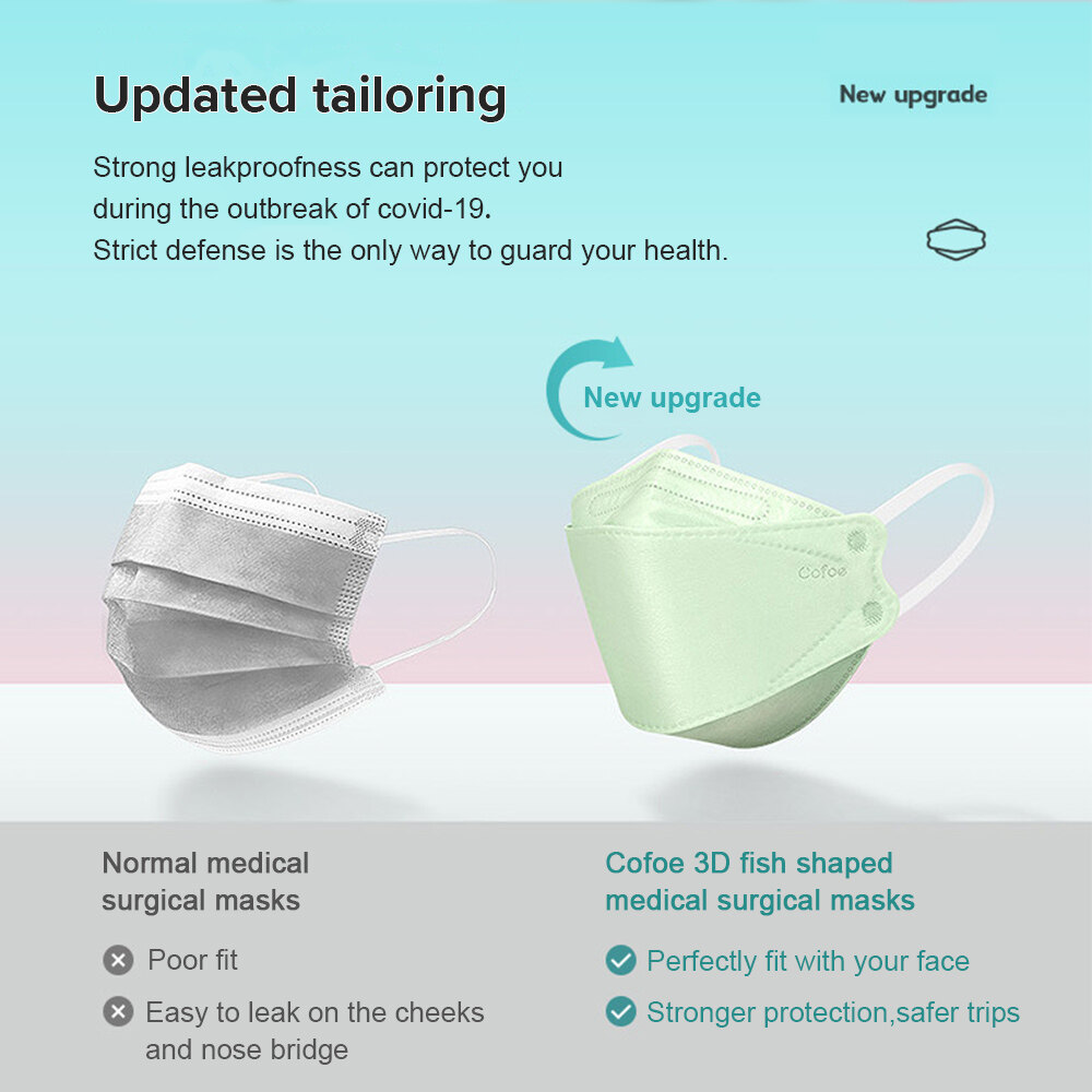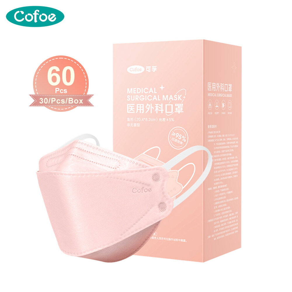 Cofoe 3Ply Medical Surgical Mask 3D Fish Mouth Face Mask Elastic Ear-Hook Protective Cover Breathable Skin-Friendly Facemask Korea Medical Mask for Adult - Individual Packing