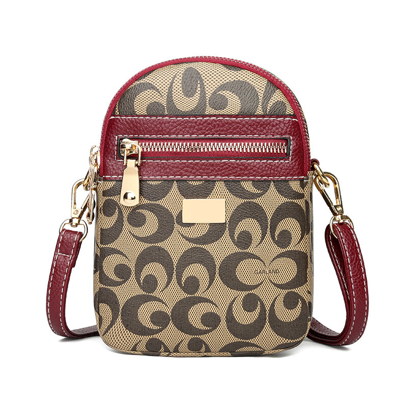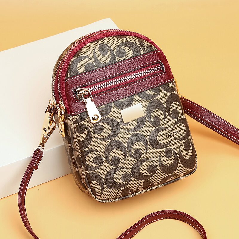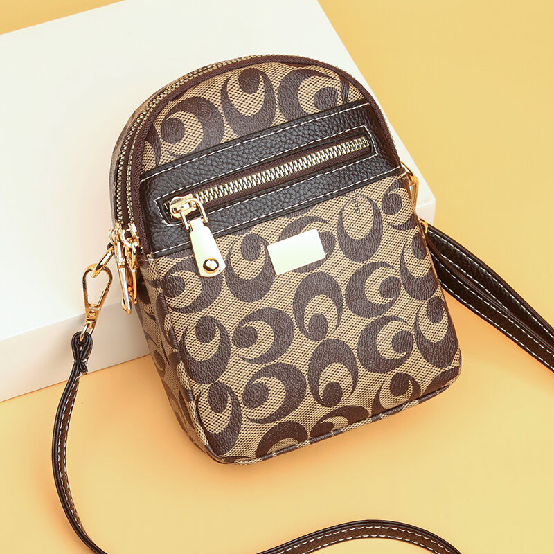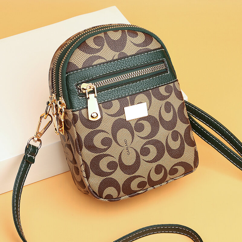 2022 New Soft Leather Printed Square Sling Bag Macaron Zipper Mobile Phone Bag Fashion Trendy Shoulder Bag All-Match Messenger Bag