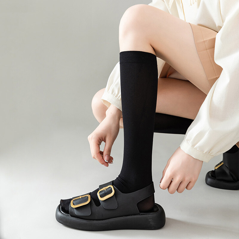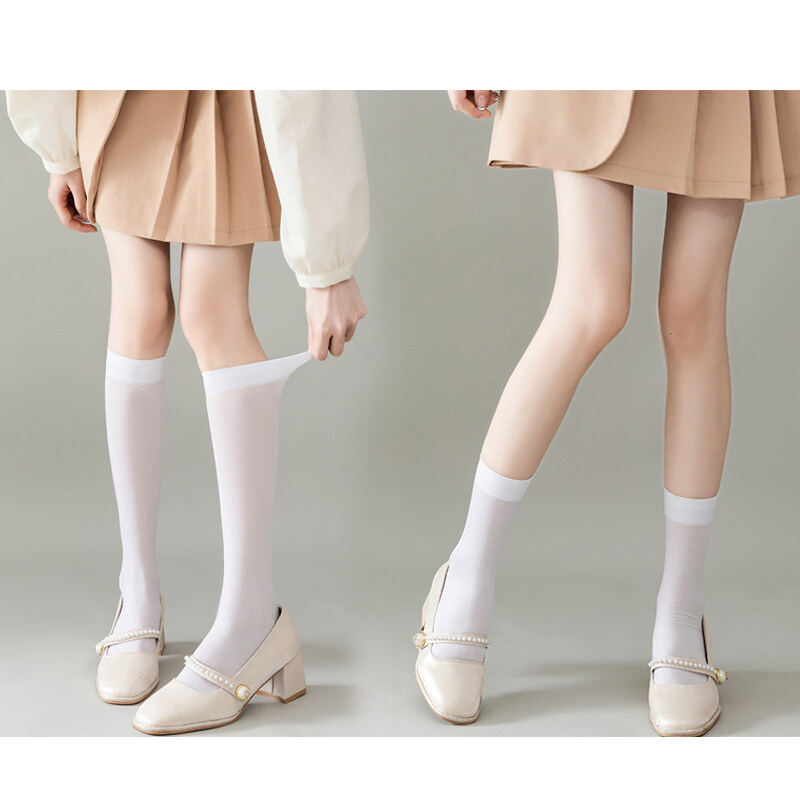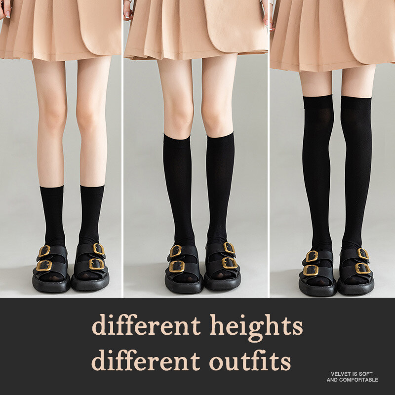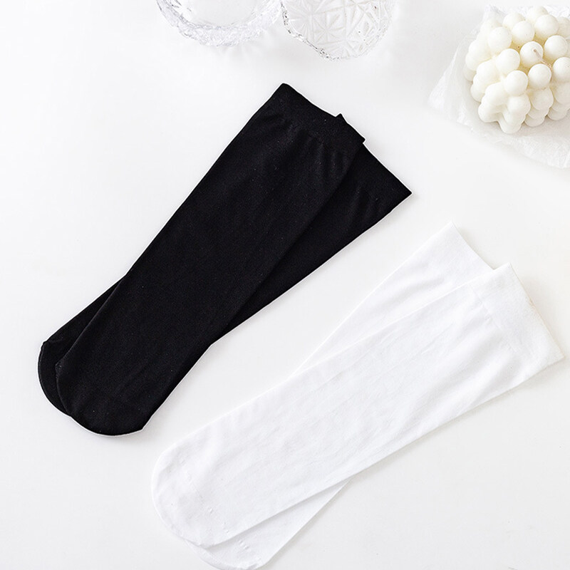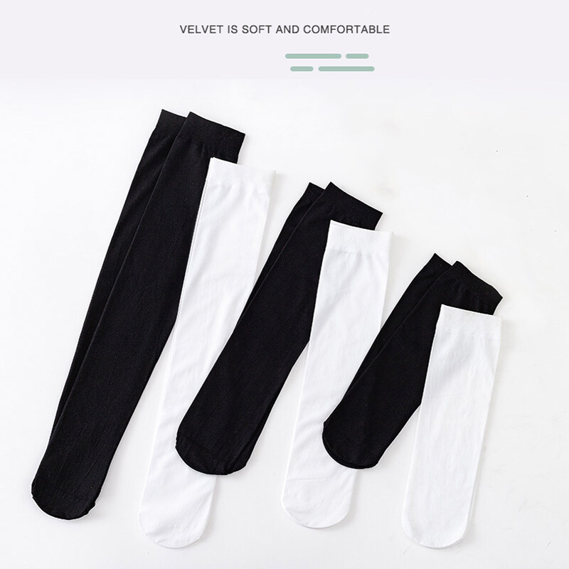 FINETOO 2 pairs Lolita Sexy Women‘s Silk Stockings Velvet For Ladies Black White Summer Autumn Winter Socks Girls High Compression Socks