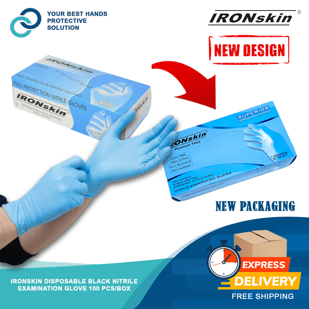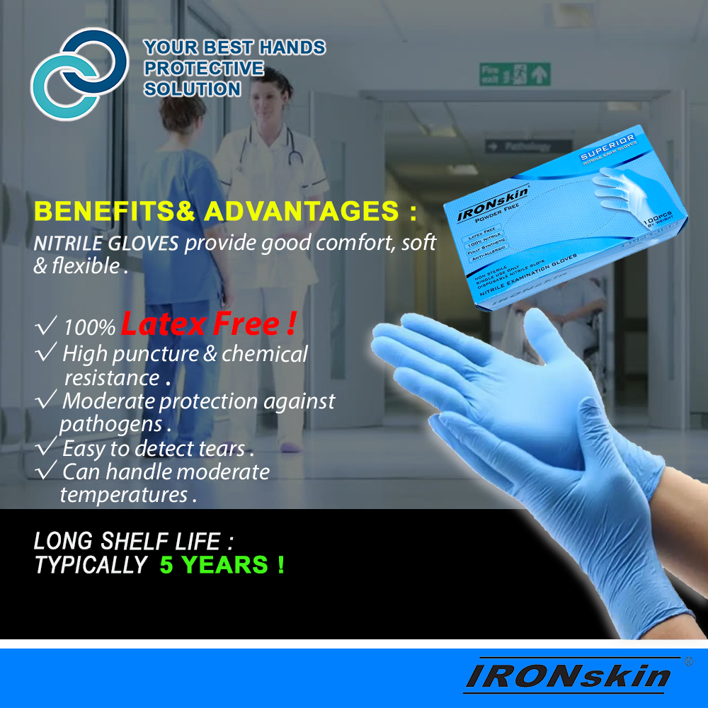 Ironskin Premier powder free nitrile examination glove Blue (m3.5g) 100 pcs [made in Malaysia]